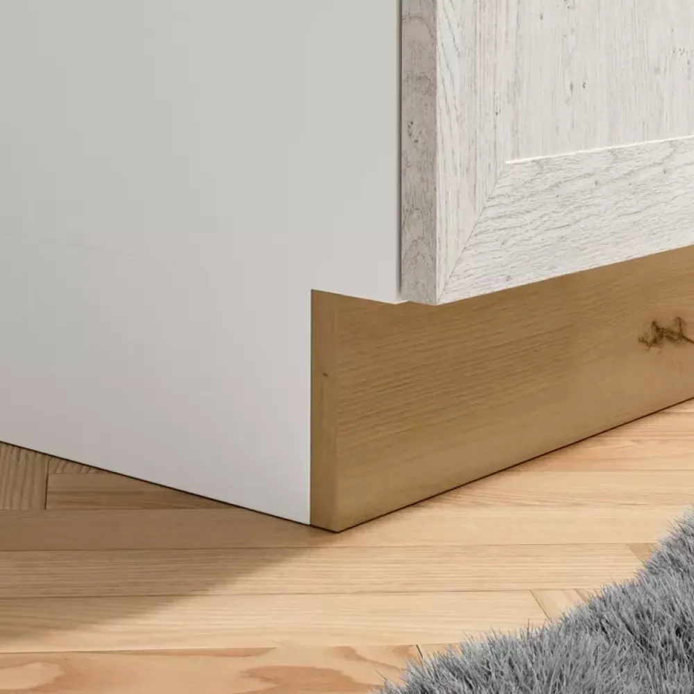 - Cokół do szafek kuchennych ma 200 cm długości i jest w kolorze dąb dziki.