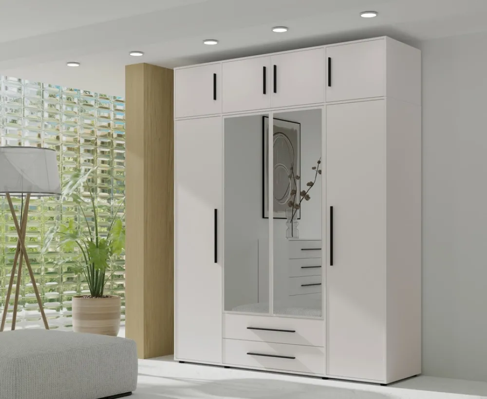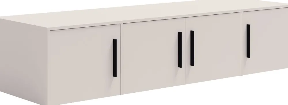 Kolor kaszmir to subtelna propozycja dla miłośników nowoczesnych, stonowanych wnętrz. Nadstawka MAXIDO do szafy czterodrzwiowej w tym wykończeniu to nie tylko funkcjonalny dodatek, ale także spójne przedłużenie stylu całej kolekcji. Powiększona środkowa wnęka pomieści większe przedmioty, a czarne uchwyty dodają eleganckiego kontrastu.