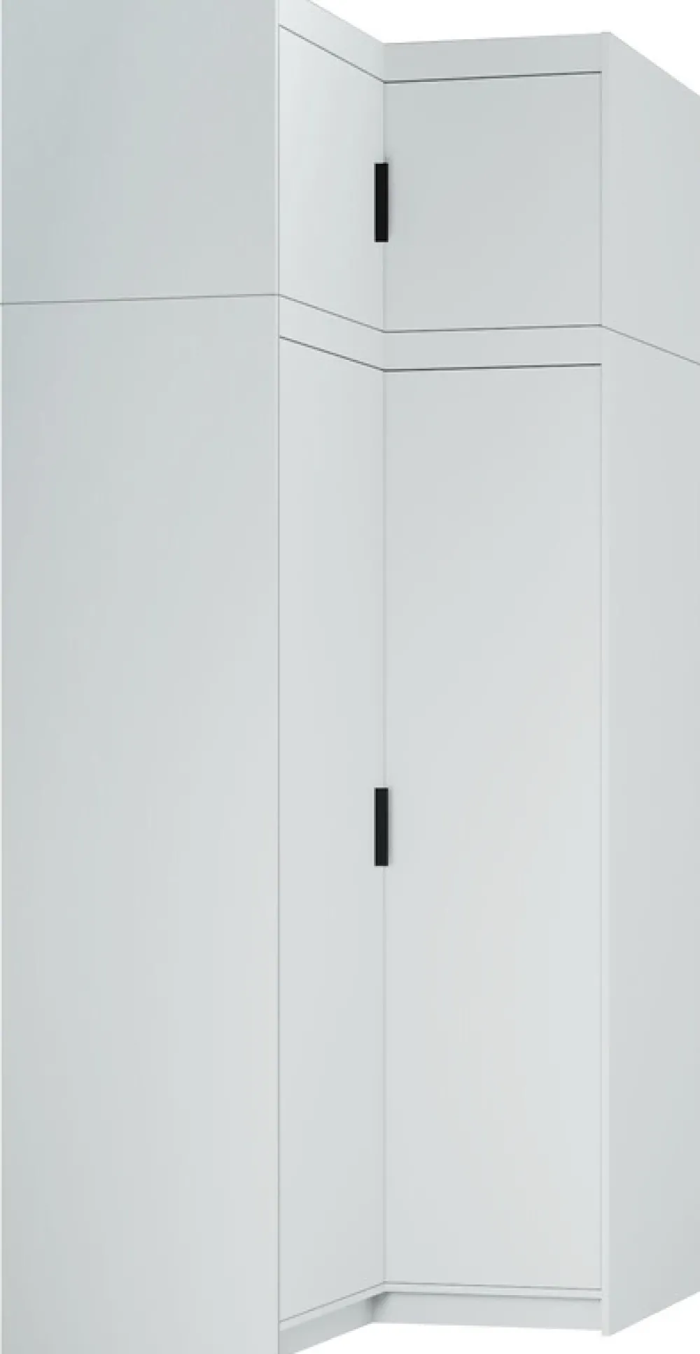 Nadstawka narożna KUBA doskonale sprawdzi się jako element zabudowy garderoby, sypialni lub przedpokoju. Jej neutralny kolor sprawia, że harmonijnie wpisuje się w różne aranżacje, a przemyślana forma pozwala na wygodne przechowywanie bez utraty estetyki wnętrza.