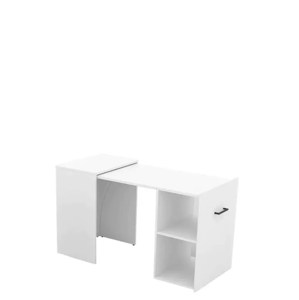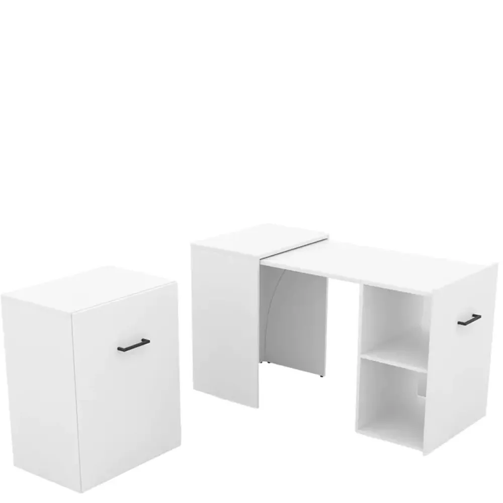 Biurko SEMARENO zostało wyposażone w funkcję składania, która pozwala w prosty oraz szybki sposób na zamianę niewielkiej szafki w pełnowymiarowe biurko, które gwarantuje komfortową ilość miejsca do nauki oraz spędzania czasu przy komputerze oraz laptopie. Dodatkowo biurko po rozłożeniu posiada dwa poziomy na książki oraz rozmaite drobne akcesoria.