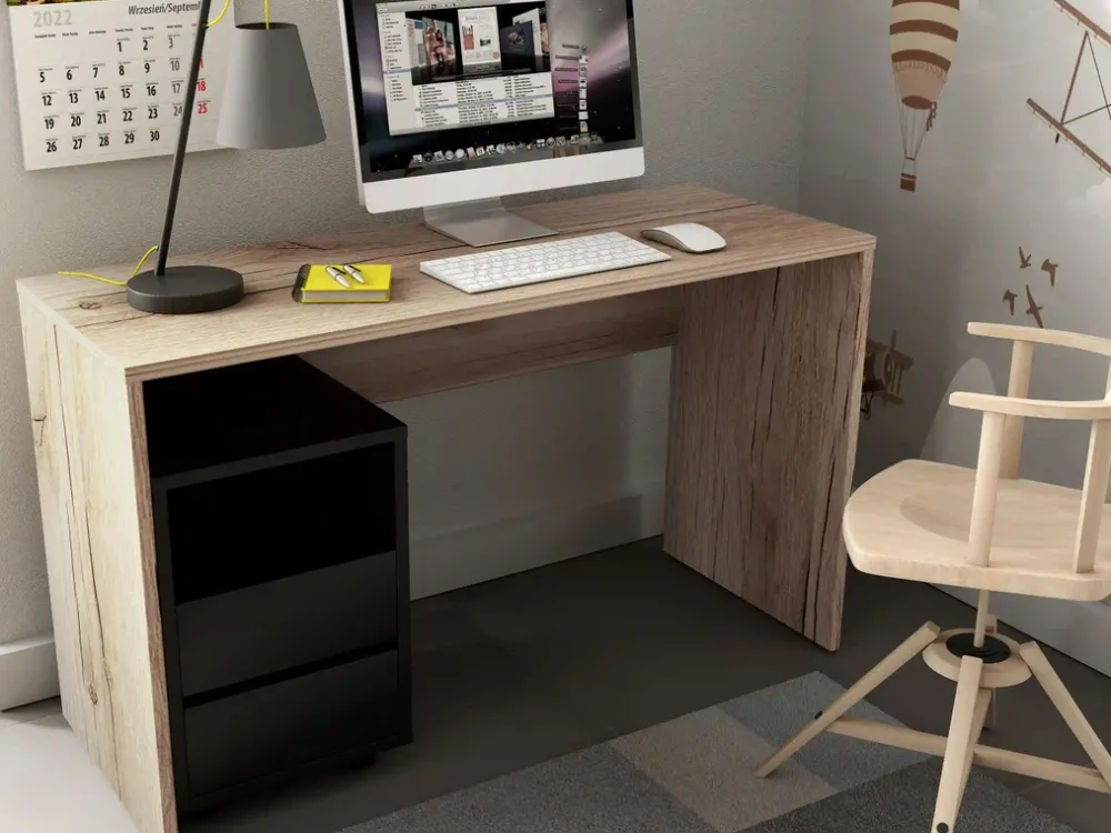 - W zestawie z biurkiem kontenerek w kolorze czarnym.