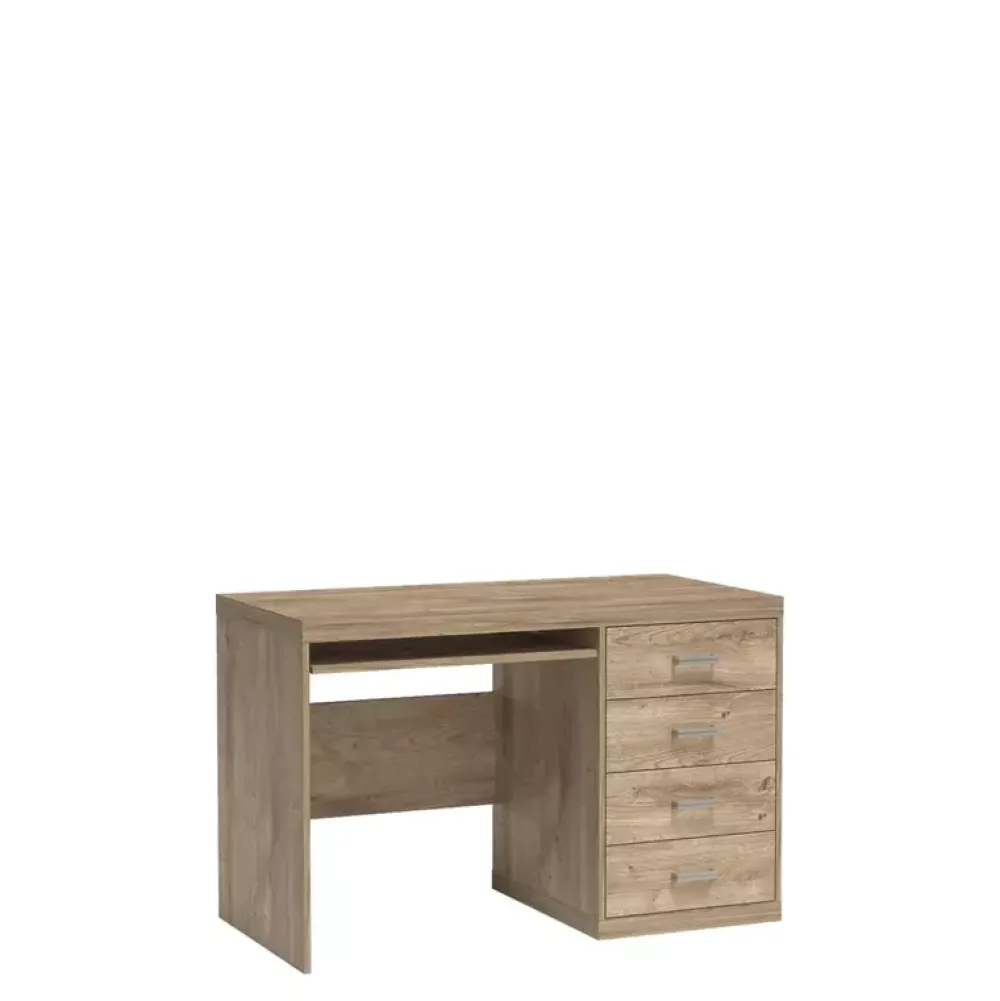 Biurko NORIENTE jest propozycją, która doskonale sprawdzi się jako miejsce pod komputer lub do pracy. Posiada blat o wymiarze 120 x 60 cm, pod którym znajduje się wysuwana tacka, która pozwoli ci zyskasz prosty dostęp do klawiatury. Biurko zostało wyposażone również w szafkę po prawej stronie, w której znajdują się cztery szuflady pozwalające zyskać szybki dostęp do najpotrzebniejszych akcesoriów biurkowych.