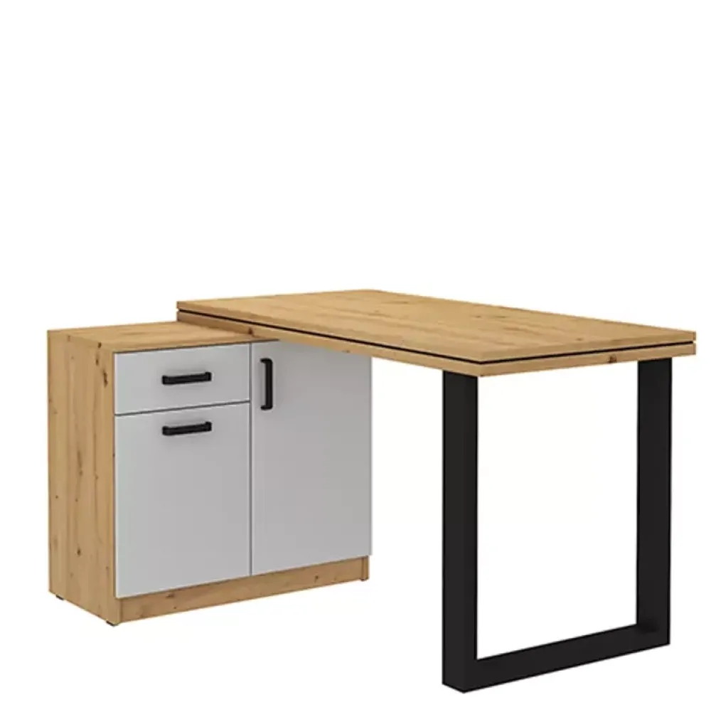 - Komoda z szufladą i półkami w zestawie z biurkiem na metalowych nogach. Duży blat zapewni wygodne miejsce do pracy.