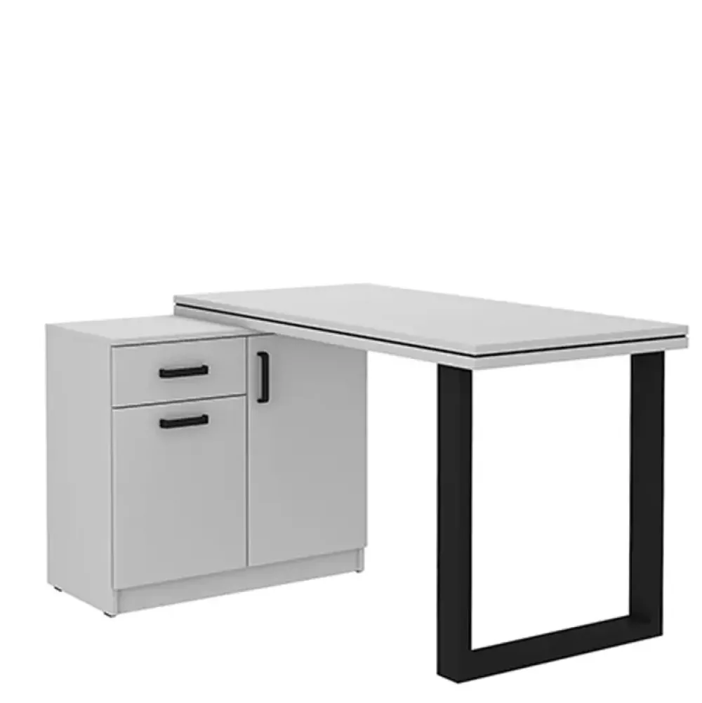 - Komoda z szufladą i półkami w zestawie z biurkiem na metalowych nogach. Duży blat zapewni wygodne miejsce do pracy.