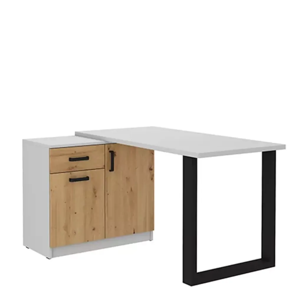 - Komoda z szufladą i półkami w zestawie z biurkiem na metalowych nogach. Duży blat zapewni wygodne miejsce do pracy.