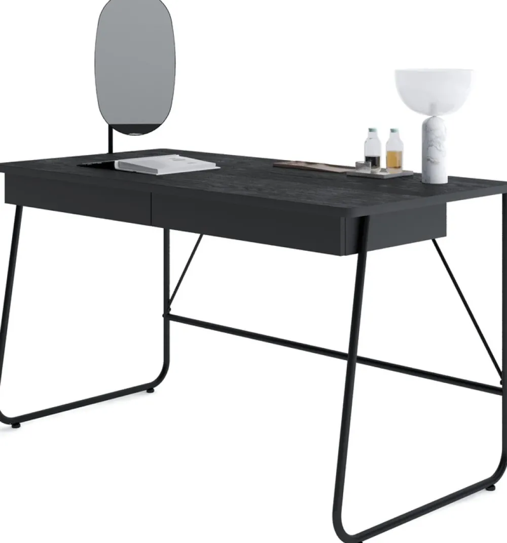 - Pracuj w przestrzeni pełnej stylu z nowoczesnym biurkiem MATCH. Czarne biurko wyposażone zostało dwie szuflady poruszające się na prowadnicach kulkowych. Blat biurka w kolorze kasztan oparty został na dwóch solidnych metalowych nogach.