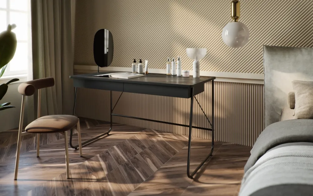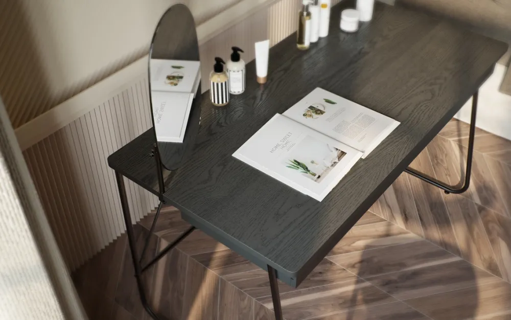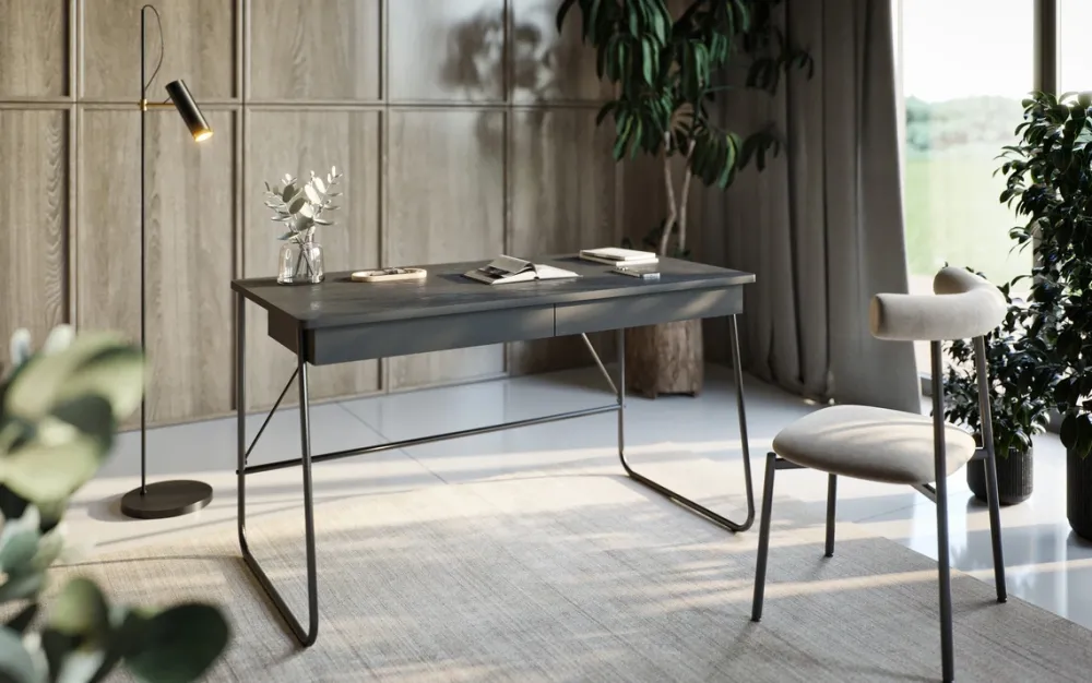 Biurko MATCH to nie tylko piękny wygląd, ale przede wszystkim funkcjonalność. Biurko z szufladami oferuje dwie pojemne szuflady, wyposażone w prowadnice kulkowe, gwarantujące płynne i ciche otwieranie oraz zamykanie. Ich dyskretny uchwyt poprzez złapanie za krawędź podkreśla minimalistyczny charakter mebla.