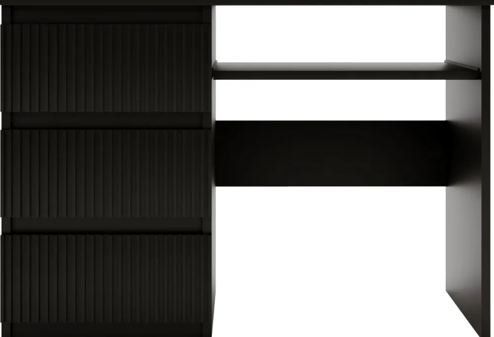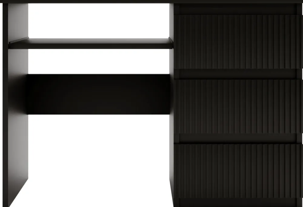 Biurko zostało wyposażone w trzy szuflady z frezowanymi frontami wykonanymi z płyty MDF, które nadają mu subtelny i stylowy charakter. Szuflady poruszają się na prowadnicach rolkowych, co gwarantuje ich płynne i ciche otwieranie. Idealne miejsce na dokumenty, przybory biurowe czy inne niezbędne przedmioty.