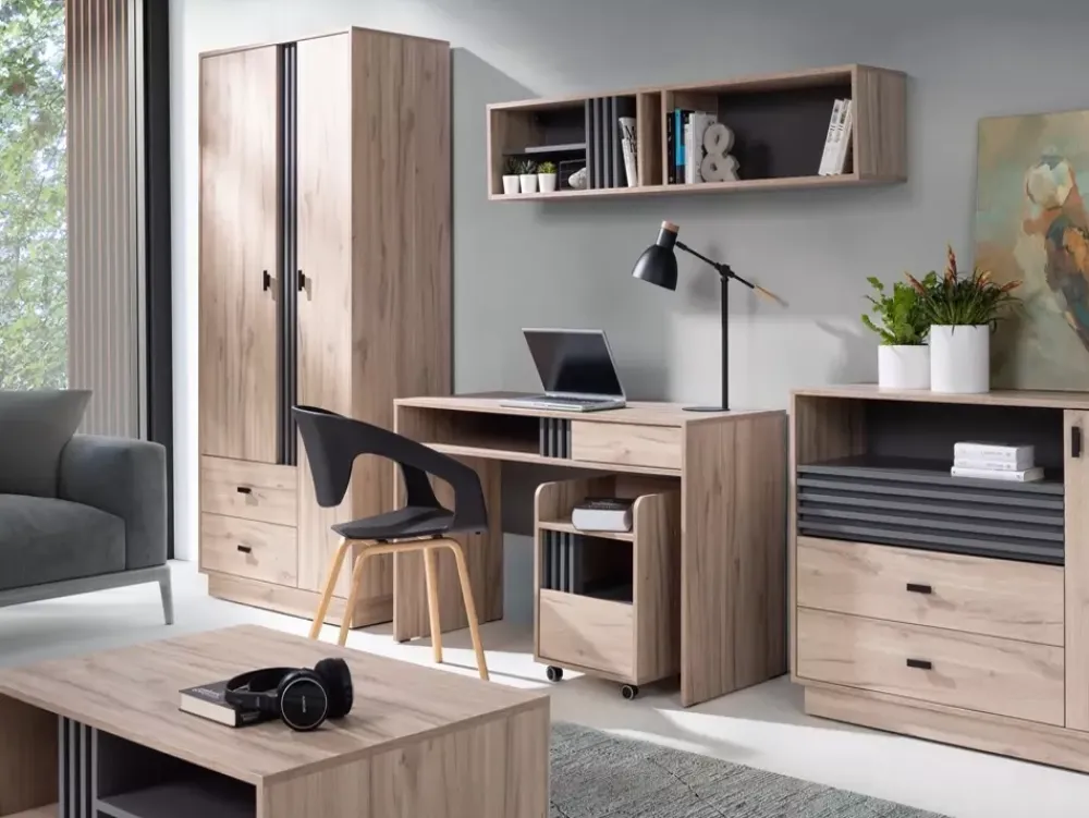 - Odśwież swój pokój eleganckim biurkiem AGRA o szerokości 120 cm. Wyróżniającym się stylem, łączy w sobie antracytowy odcień z jasnym dębem estana. To nie tylko praktyczna przestrzeń do pracy, ale i wyrafinowany dodatek do każdego wnętrza.