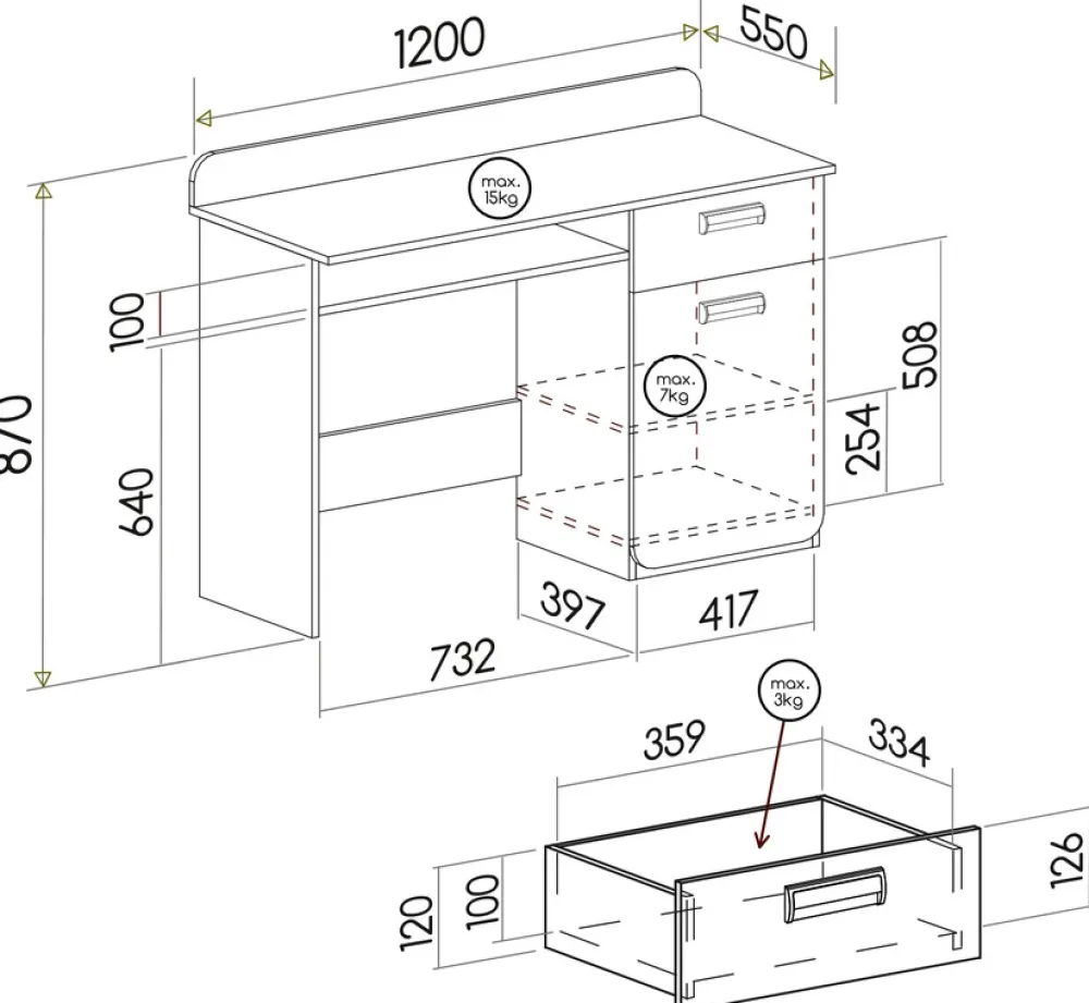 Biurko to charakteryzuje się optymalnymi wymiarami, które sprawdzają się nawet w mniejszych przestrzeniach. Szerokość 120 cm, wysokość 87 cm oraz głębokość 55 cm gwarantują komfortową przestrzeń do pracy, nie zajmując przy tym zbyt wiele miejsca. Tak przemyślane wymiary czynią je idealnym wyborem do pokoju dziecięcego.