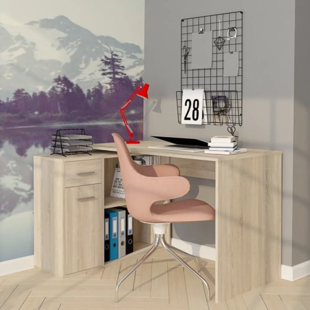- Biurko narożne NEXIO w dekorze dąb sonoma to idealny wybór do pokoju młodzieżowego – z szufladą, szafką i półkami. Kompaktowe wymiary i nowoczesny design zapewniają wygodę nauki i porządek nawet w niewielkich przestrzeniach.