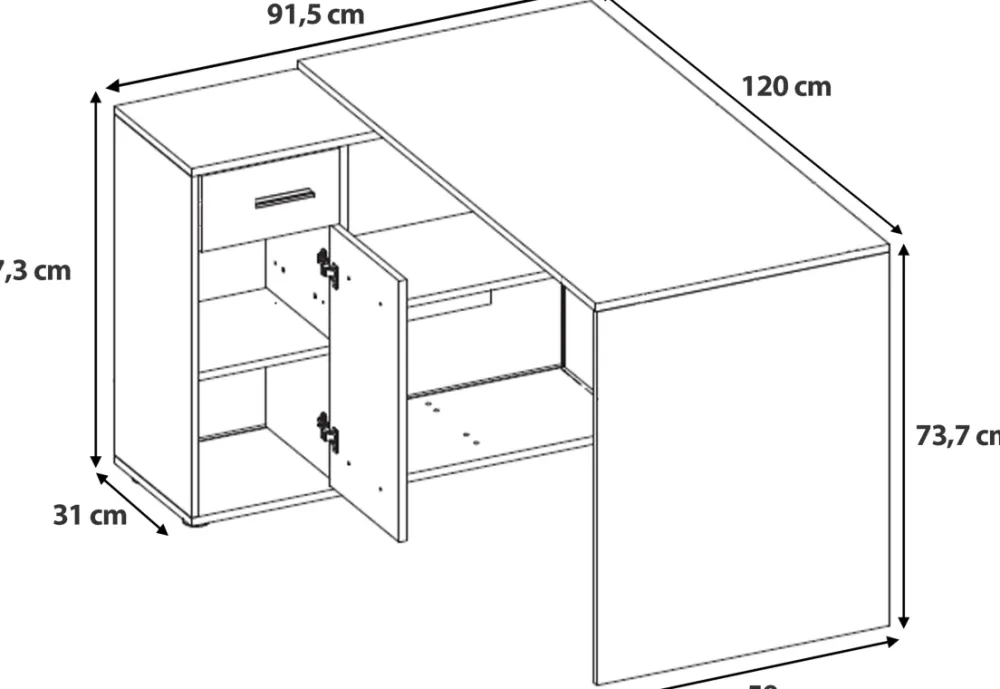 Zastanawiasz się, czy biurko narożne zmieści się w pokoju dziecka? Dzięki szerokości 120 cm i głębokości 91,5 cm NEXIO oferuje komfortową powierzchnię roboczą, nie zajmując przy tym dużo miejsca. To doskonały wybór dla każdego, kto ceni sobie porządek i funkcjonalność.