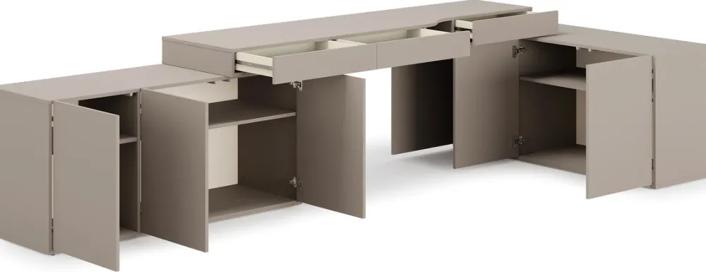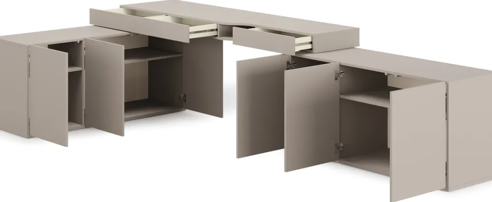 - Zestaw mebli młodzieżowych WOOW z biurkiem lewym i dwiema komodami w kolorach szampański i clay gray to funkcjonalne i stylowe rozwiązanie do pokoju nastolatka. Duży blat i pojemne szafki tworzą wygodną przestrzeń do nauki, przechowywania i rozwoju.