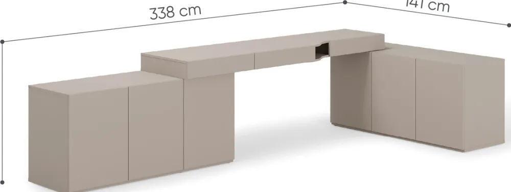 - Wymiary zestawu: 338 cm (szer.) x 79 cm (wys.) x 141 cm (gł.)