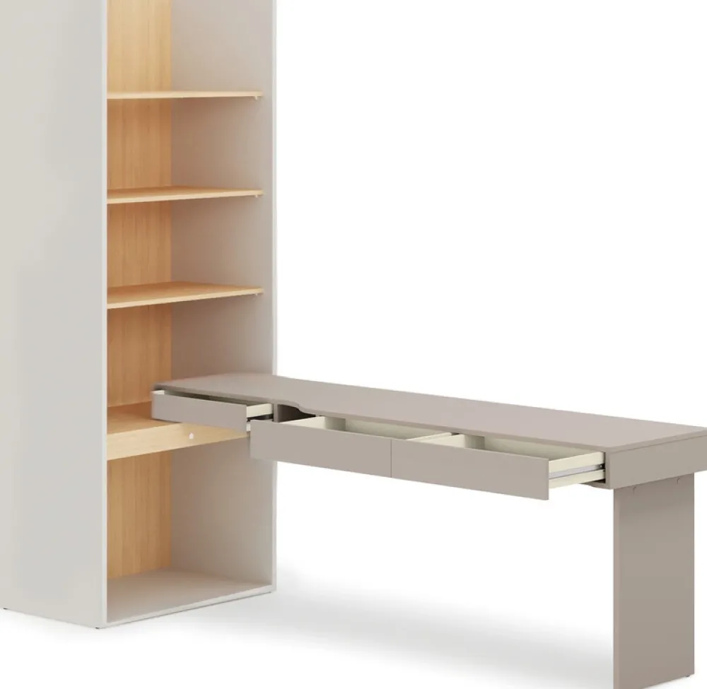 - Nowoczesny zestaw mebli młodzieżowych – połączenie biurka i regału w spójnej stylistyce