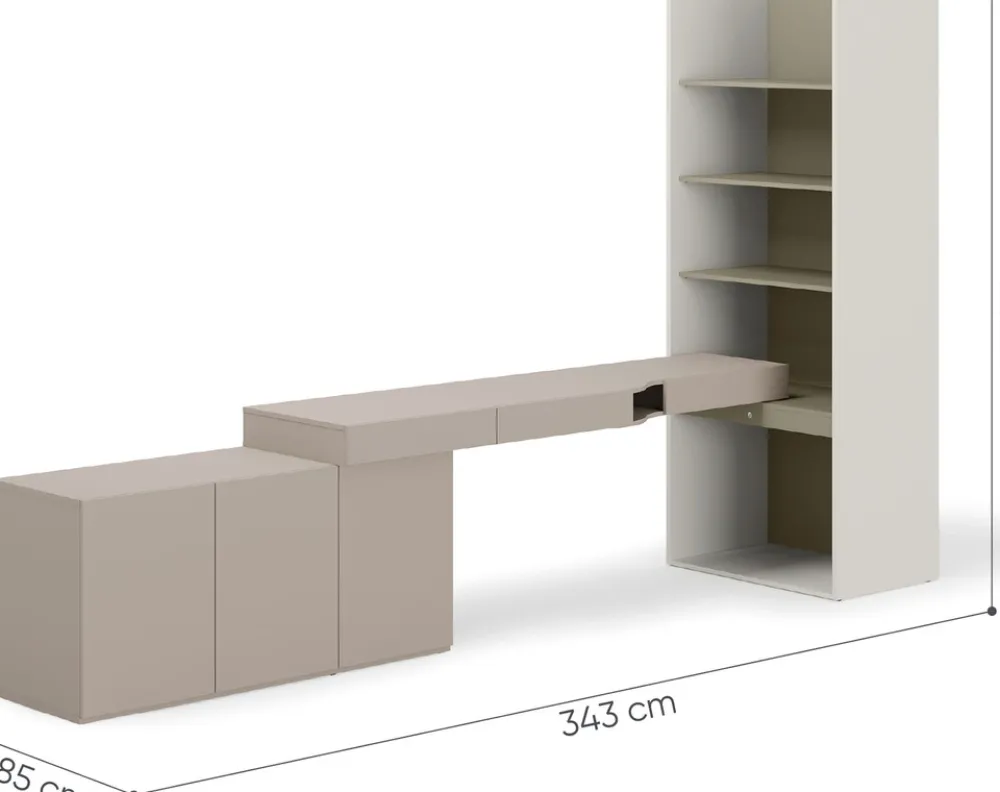 Zestaw mebli młodzieżowych w kolorystyce szampański/eukaliptus/clay gray to idealne rozwiązanie dla nastolatków, którzy potrzebują przestrzeni do nauki, przechowywania i relaksu. W skład zestawu wchodzi trzydrzwiowa komoda, praktyczne lewe biurko oraz pojemny regał – wszystko zaprojektowane w duchu nowoczesnej prostoty i maksymalnej funkcjonalności.