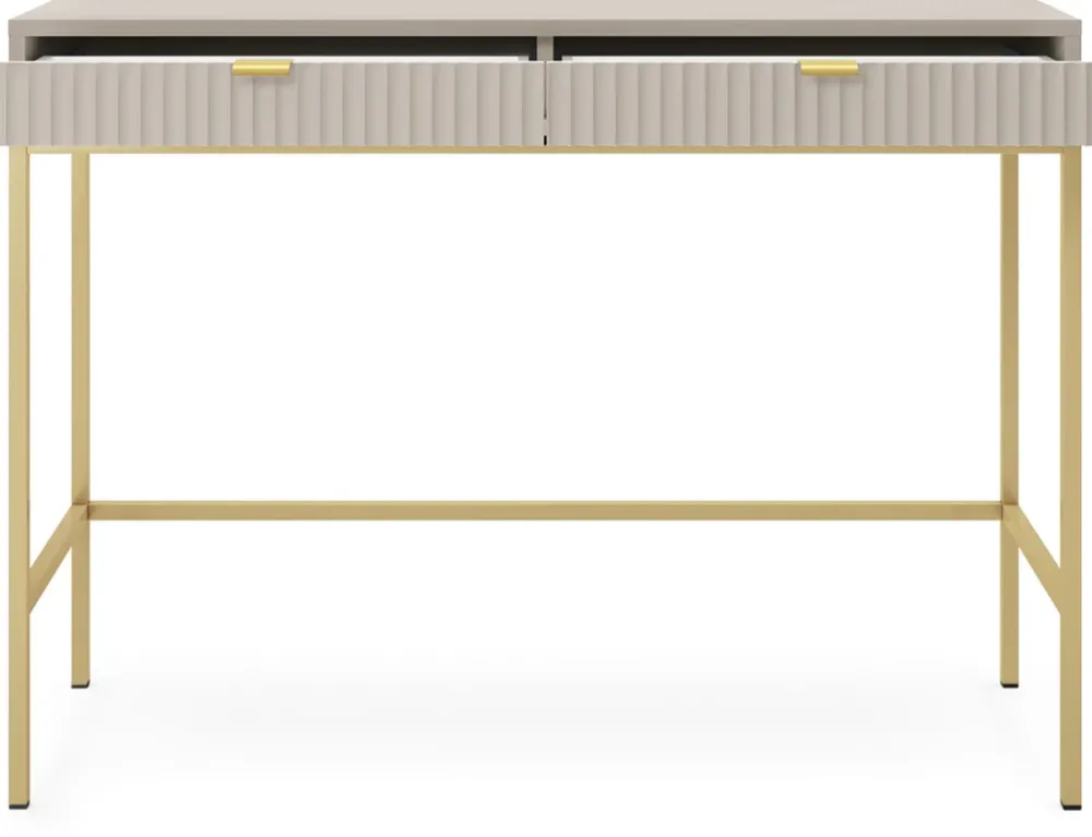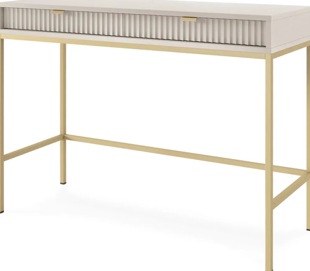 - Toaletka z szufladami AVANTI to propozycja dla osób poszukujących niekonwencjonalnych rozwiązań na stylowe zagospodarowanie przestrzeni. Toaletka posiada eleganckie, metalowe nogi oraz uchwyty wykonane z aluminium w złotym kolorze.