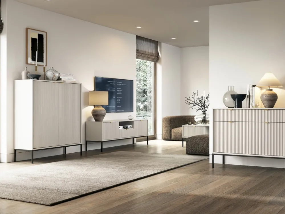 - Ryflowane fronty zostały wykonane są z płyty MDF o grubości 18 mm. Posiadają widoczne przetłoczenia nadające toaletce charakteru.