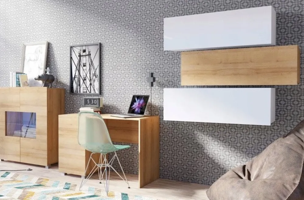 Biurko z kolekcji MODERN o szerokości 110 cm to połączenie nowoczesnego designu z praktycznymi rozwiązaniami, które sprawdzą się zarówno w pokoju młodzieżowym, jak i domowym biurze. Eleganckie wykończenie w kolorze biały mat/dąb złoty rozświetla wnętrze, a trzy pojemne szuflady umożliwiają utrzymanie idealnego porządku.