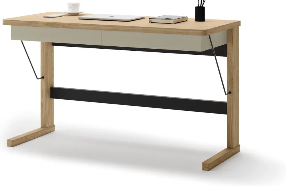 Biurko OLLIE to idealne rozwiązanie do młodzieżowego pokoju – łączy nowoczesny design z funkcjonalnością, zapewniając wygodną przestrzeń do nauki, pracy czy rozrywki. Połączenie korpusu w kolorze dąb olejowany z eleganckimi frontami w odcieniu kaszmiru tworzy modny duet, który z łatwością wpisze się w różne aranżacje. Dwie praktyczne szuflady i szeroki blat pozwalają na zachowanie porządku i swobodę działania każdego dnia.