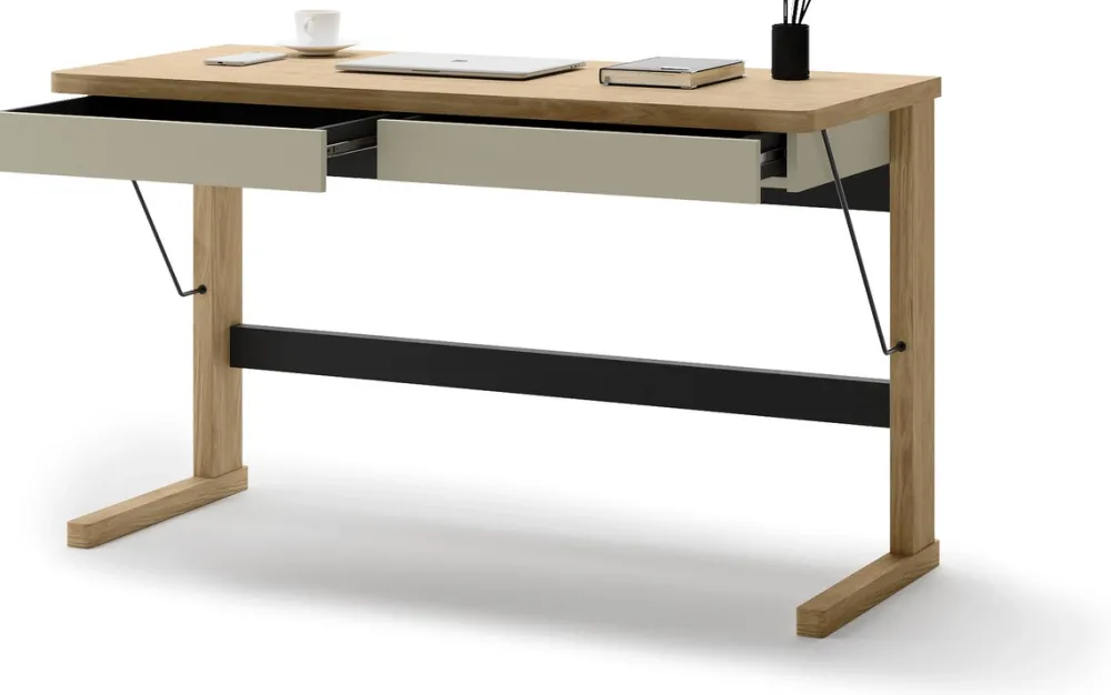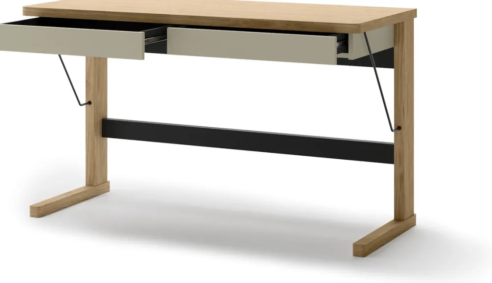 - Biurko młodzieżowe OLLIE o szerokości 131 cm zostało wykonane w nowoczesnej stylistyce w kolorze dąb olejowany kaszmir. Biurko zostało wyposażone w dwie pojemne szuflady z bezuchwytowym mechanizmem otwierania. Obrzeża ABS