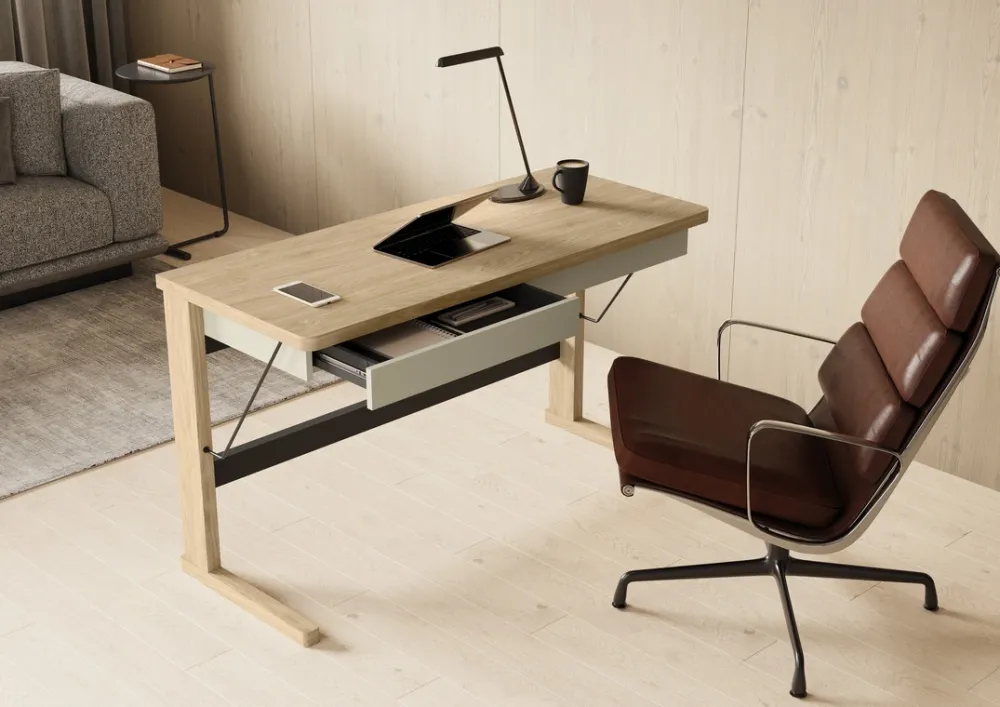 - Czarne detale – nadają biurku wyrazistości i nowoczesnego charakteru