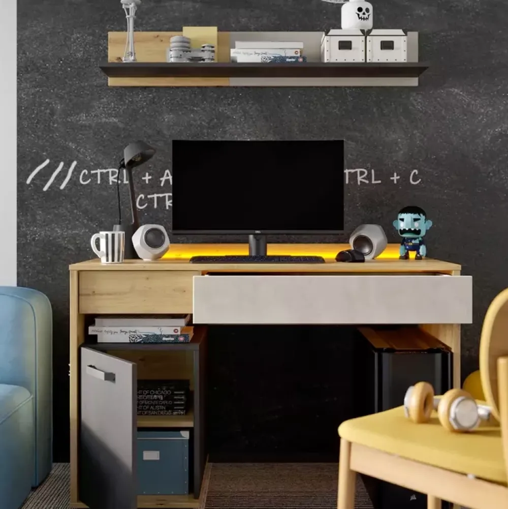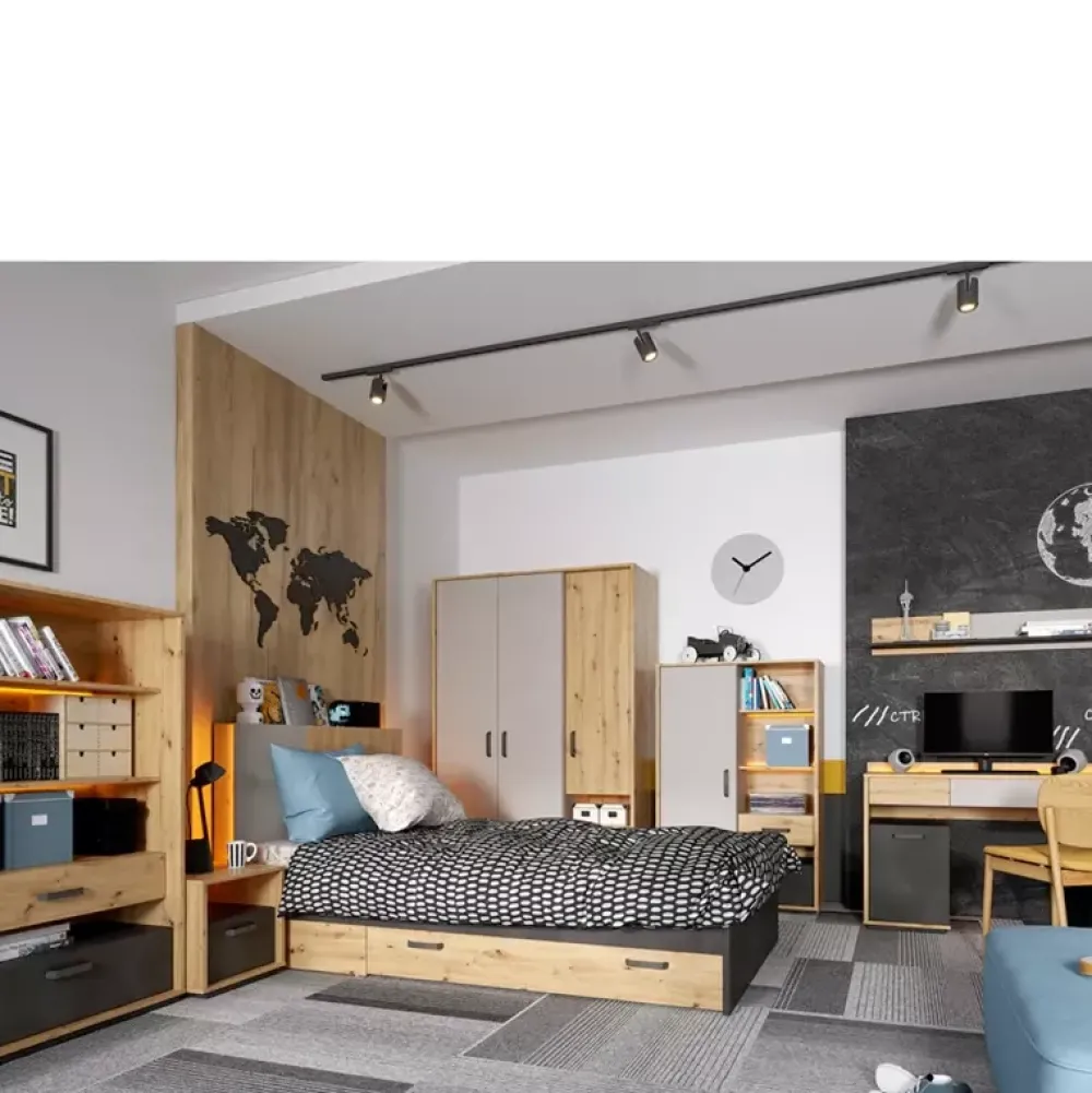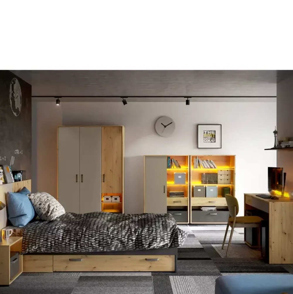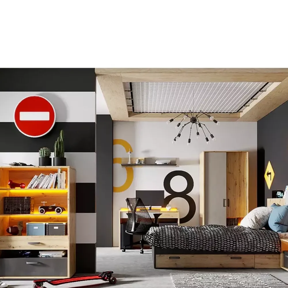 Półka na książki QUBIC została wykonana w nowoczesnej stylistyce, na którą składa się stonowana kolorystyka mebla oraz uchwyty wykonane z metalu w matowym wykończeniu, dzięki czemu doskonale wpisuje się we współczesne trendy aranżacji pokoi młodzieżowych.