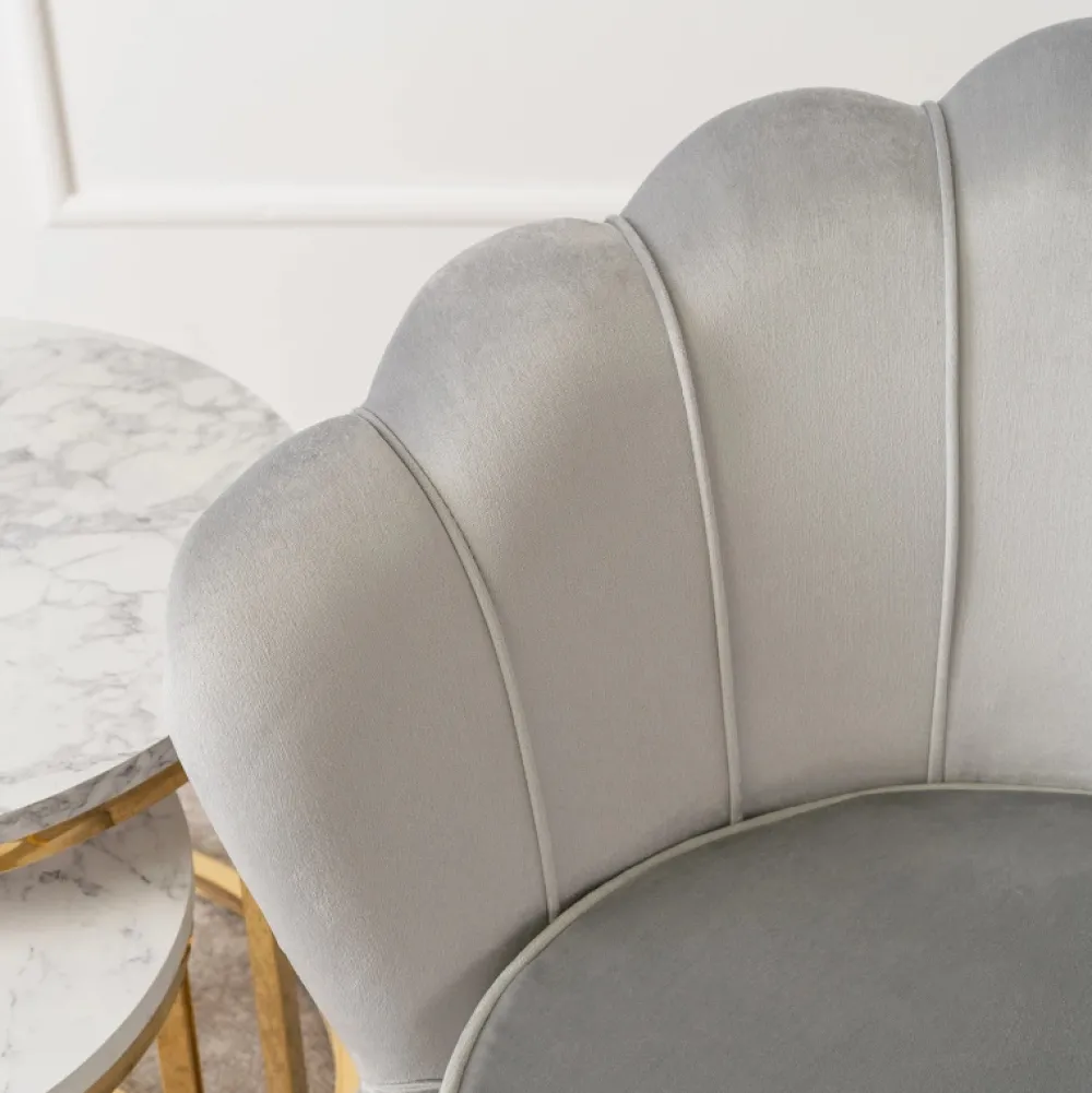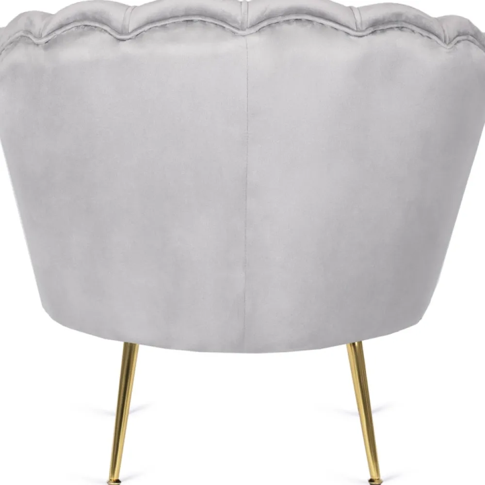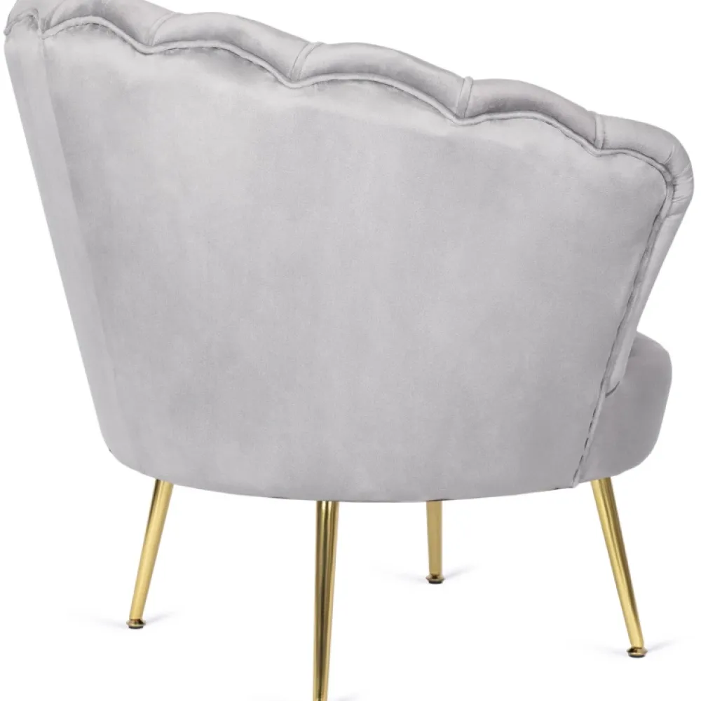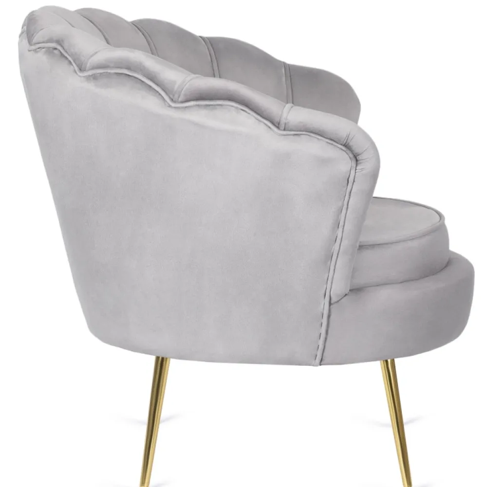 - Fotel ADELLE w eleganckiej szarości to połączenie nowoczesnego designu i komfortu. Miękka tapicerka z weluru, elastyczne wypełnienie i złota metalowa podstawa tworzą harmonijną całość, idealną do salonu, sypialni czy biura. Stabilność i estetyka w jednym.