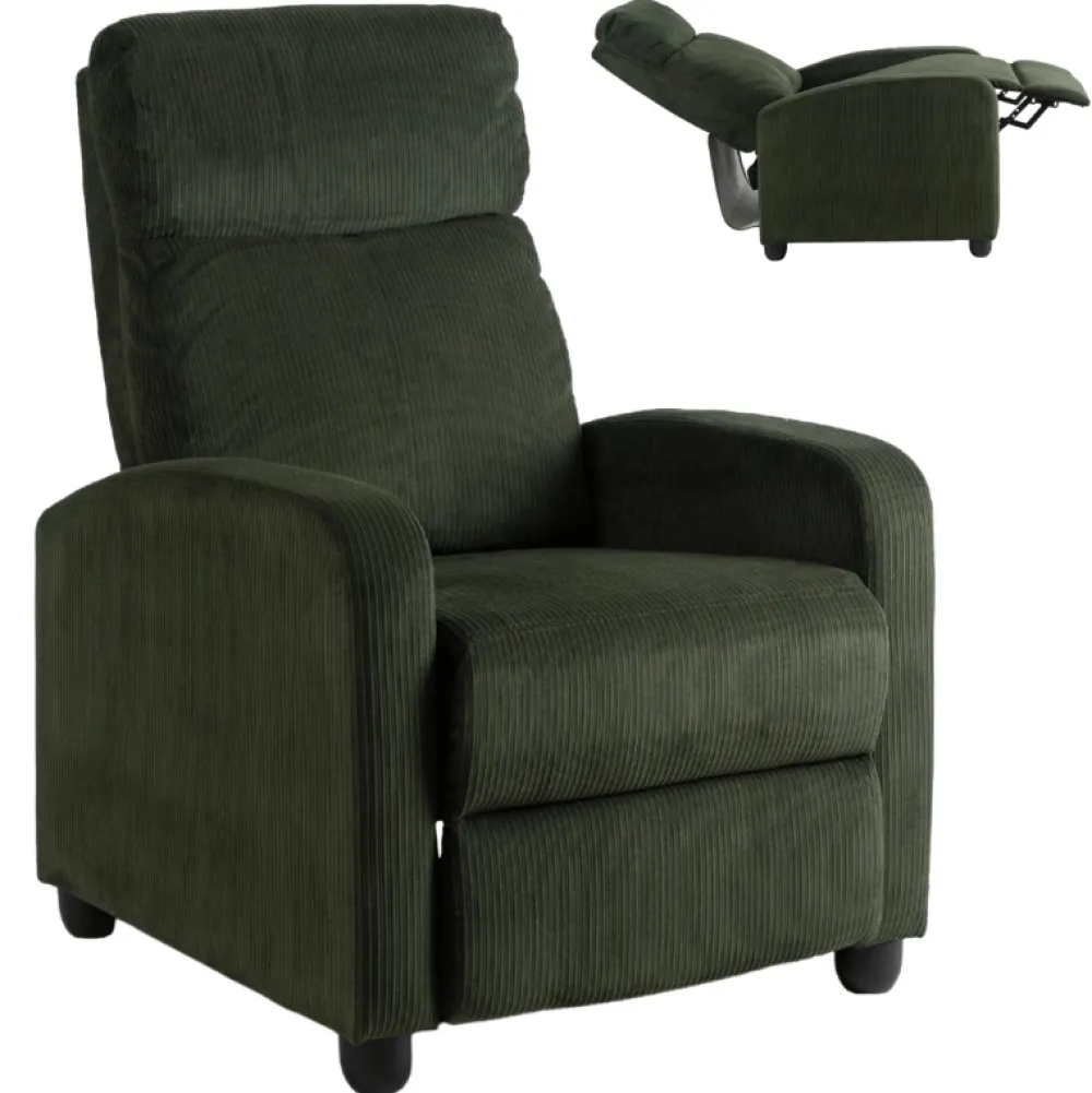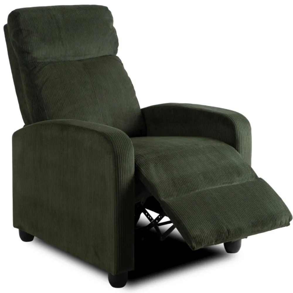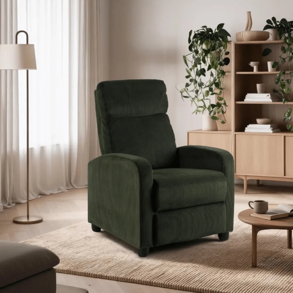 Fotel rozkładany sztruksowy DUMIO – relaks w zielonym wydaniu