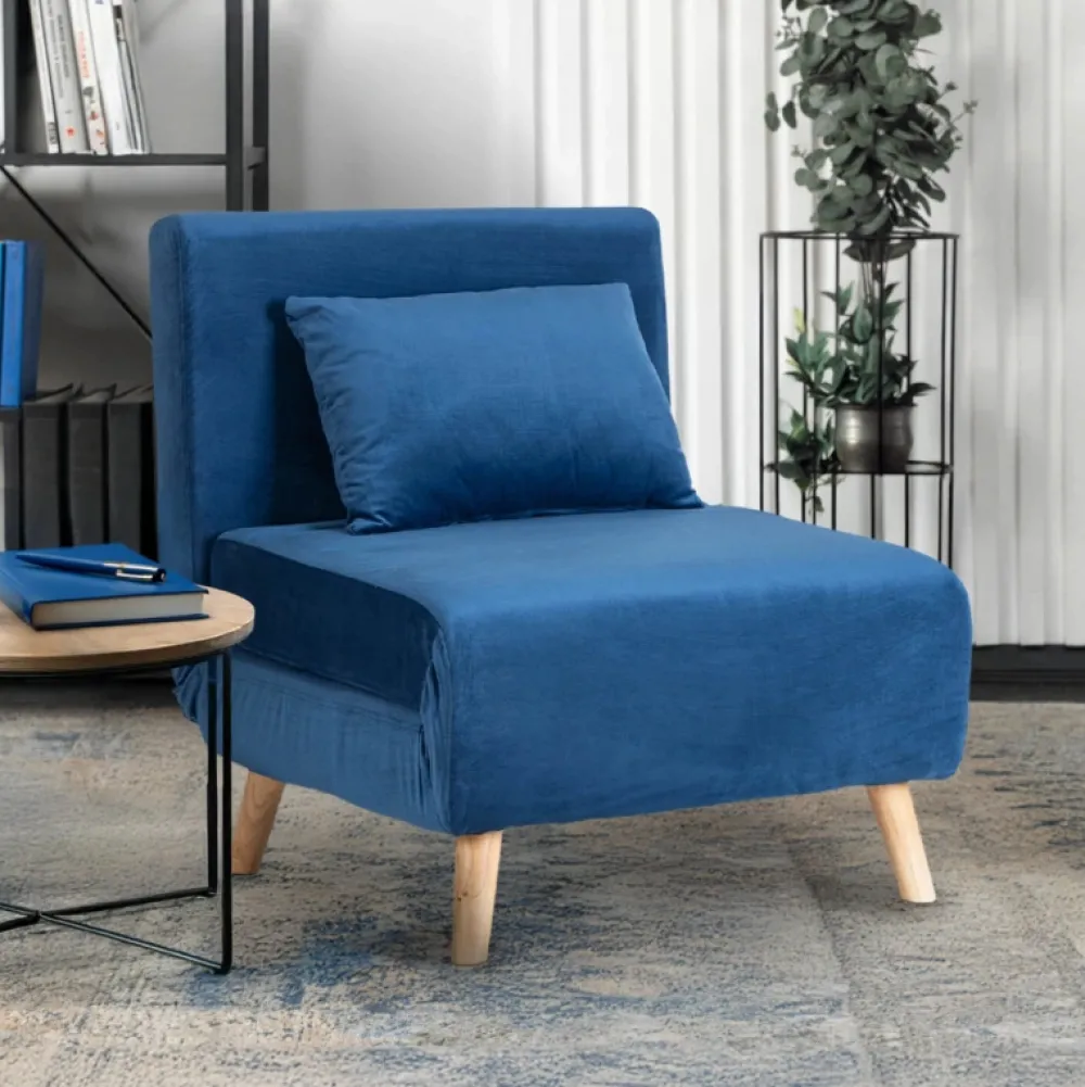 Fotel rozkładany MALIE – funkcjonalność i wygoda w nowoczesnym, granatowym wydaniu