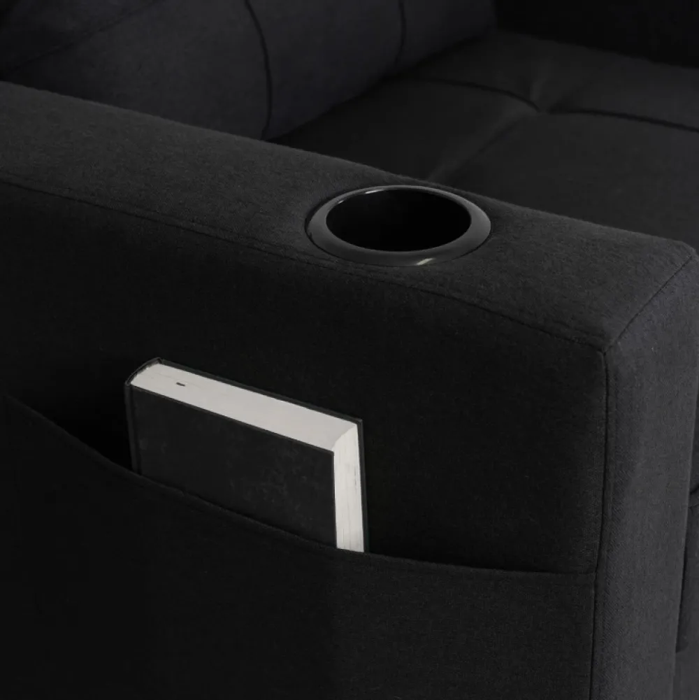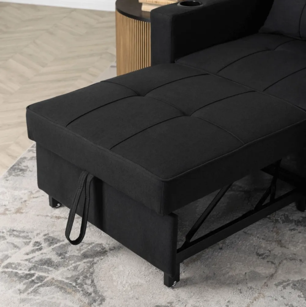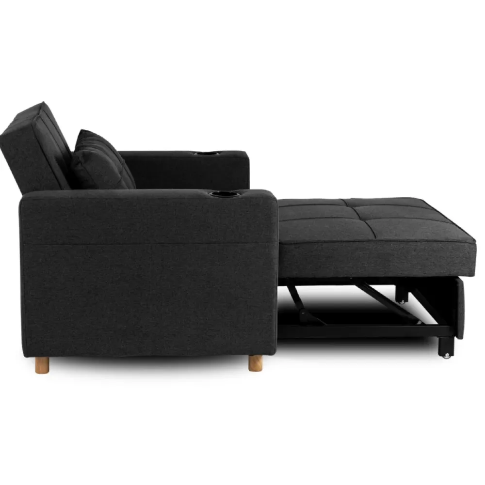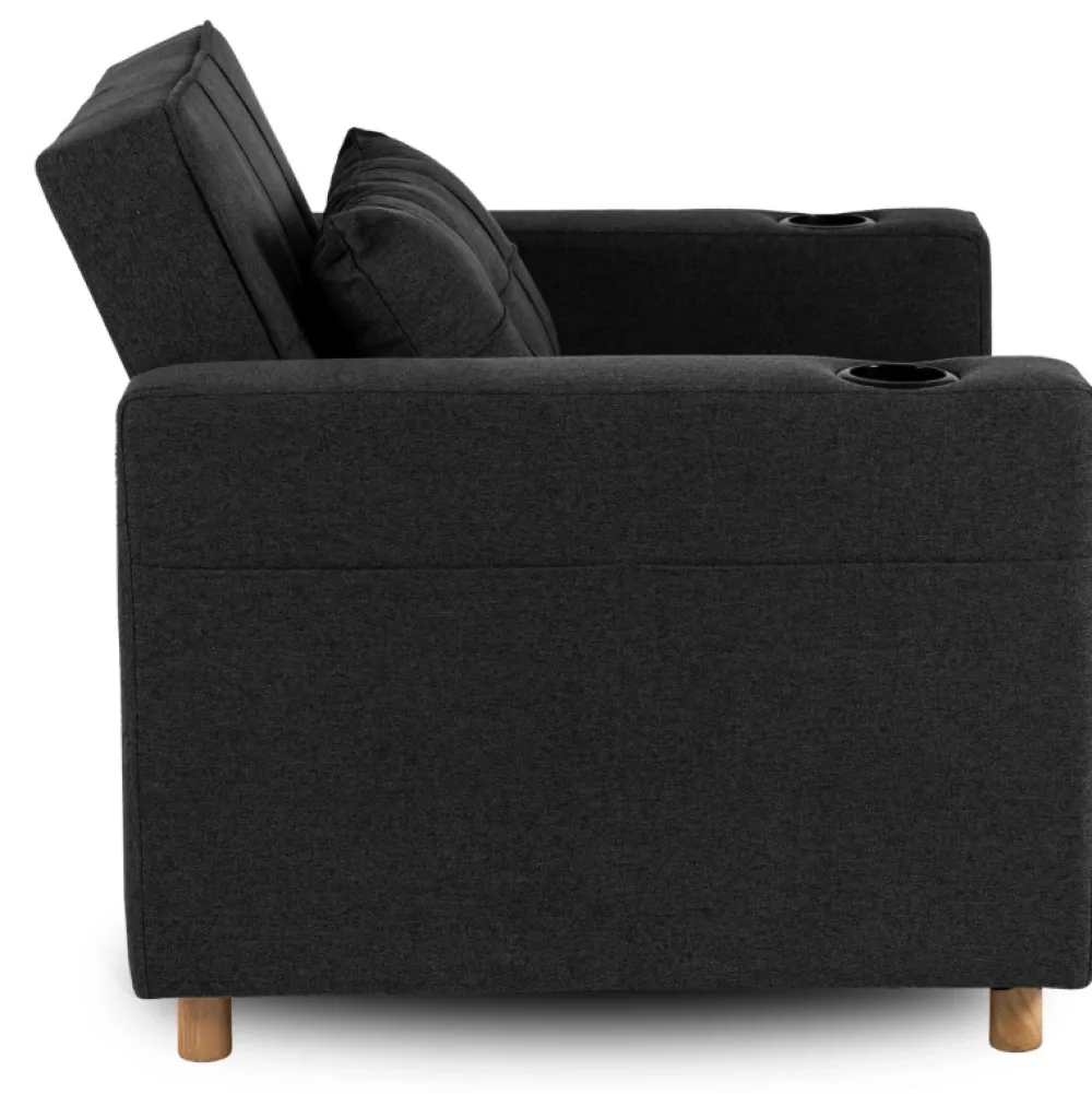 - Fotel rozkładany SOREL w kolorze czarnym łączy funkcjonalność i komfort. Z funkcją spania (72×186 cm), trzema poziomami rozkładania, podnóżkiem, podłokietnikami i wbudowanymi wkładkami na napoje. Tapicerka łatwa w czyszczeniu, metalowy korpus.