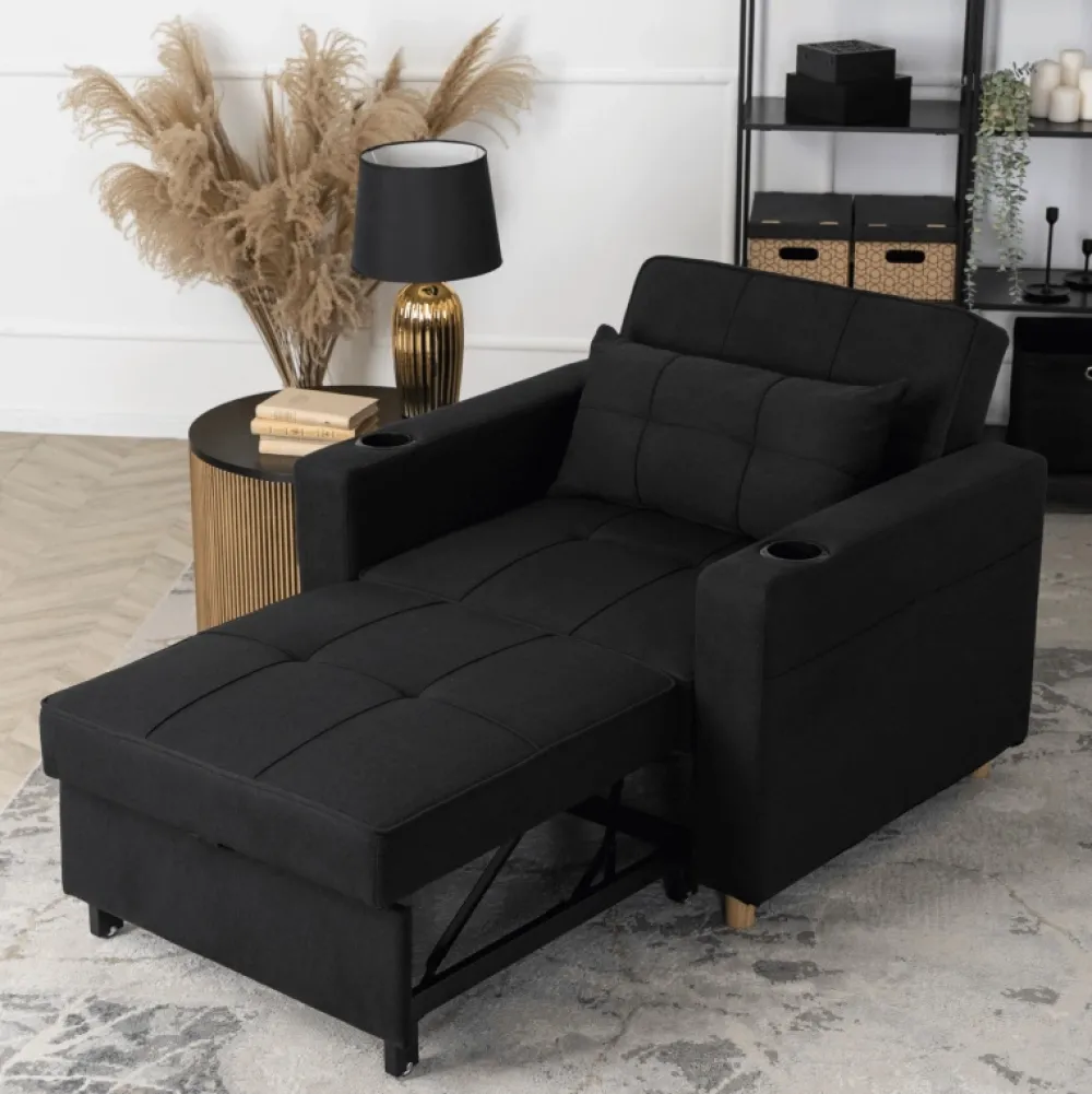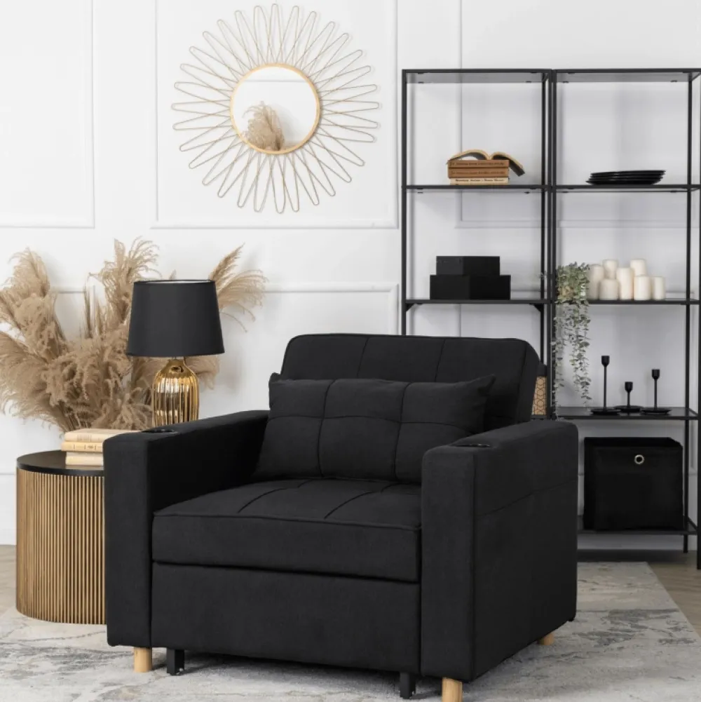 Zamów fotel SOREL już dziś i zyskaj stylowe, wygodne miejsce do relaksu i snu w eleganckim, czarnym wydaniu!