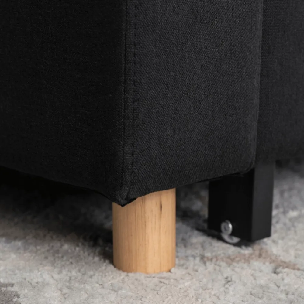 - Tapicerka z tkaniny w kolorze czarnym – nowoczesna, łatwa w czyszczeniu i odporna na zużycie