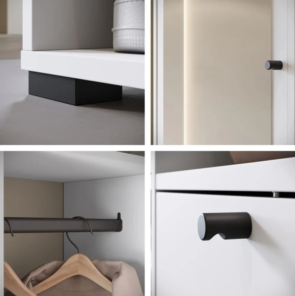 Garderoba dostępna jest w czterech stylowych wariantach kolorystycznych: ciepły dąb artisan, eleganckie połączenie dąb artisan/biały, ponadczasowa biel oraz nowoczesny grafit. Dzięki temu z łatwością dopasujesz ją do aranżacji swojego przedpokoju.