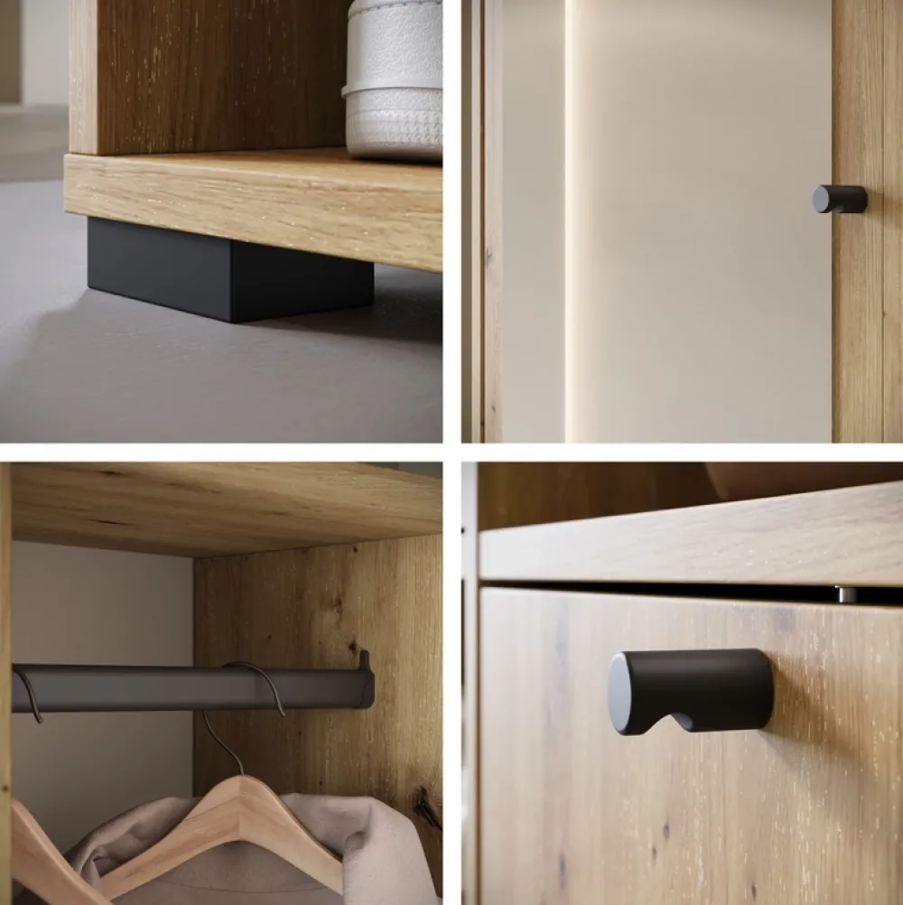 Garderoba dostępna jest w czterech stylowych wariantach kolorystycznych: ciepły dąb artisan, eleganckie połączenie dąb artisan/biały, ponadczasowa biel oraz nowoczesny grafit. Dzięki temu z łatwością dopasujesz ją do aranżacji swojego przedpokoju.