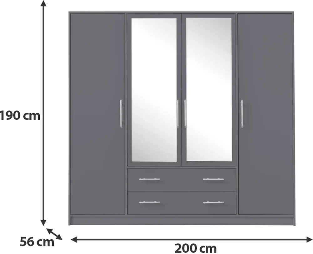 Nie jedno, nie dwa, ale aż czworo drzwi otwiera się do przestronnej wnęki, w której możesz przechowywać wszystko – od codziennych ubrań, po eleganckie kreacje na specjalne okazje. Każde drzwi wykonane z dbałością o najmniejszy detal, zapewniają łatwy dostęp do zawartości szafy.