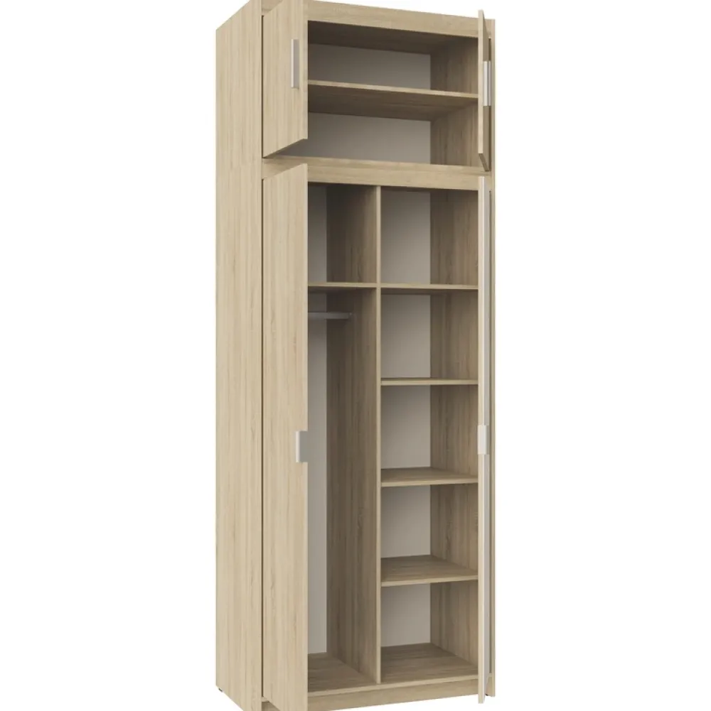 Zamów szafę KUBA z nadstawką w kolorze dąb sonoma i ciesz się funkcjonalnym oraz stylowym przechowywaniem każdego dnia!