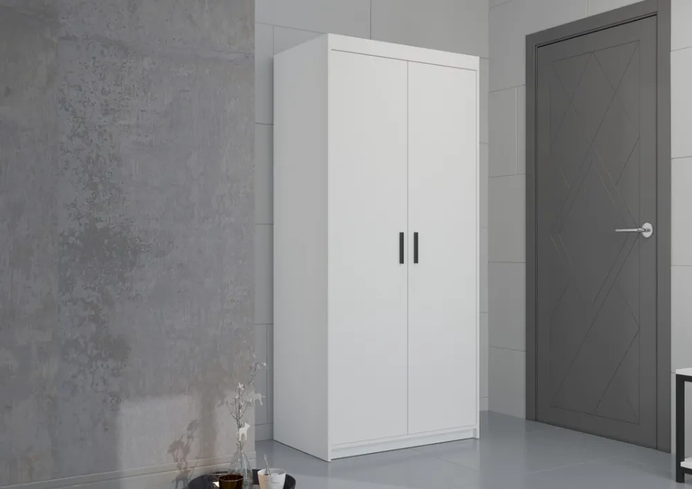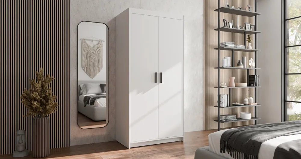 Biała szafa dwudrzwiowa KUBA 89 cm – minimalizm i organizacja w kompaktowej formie