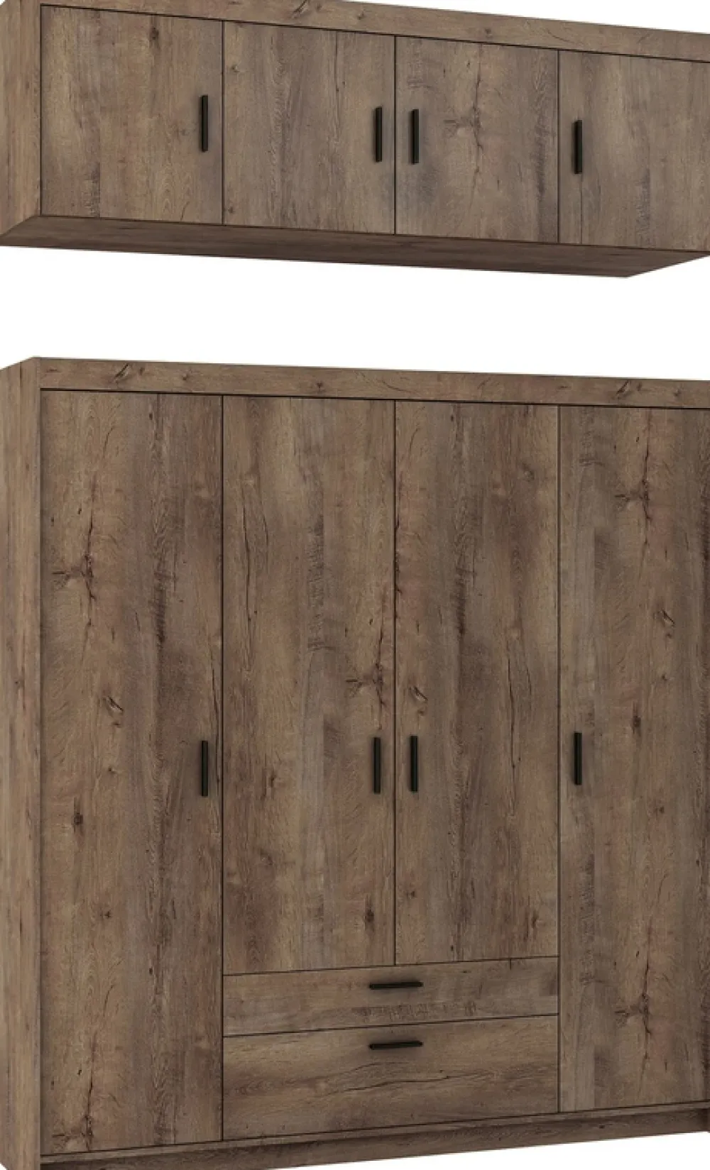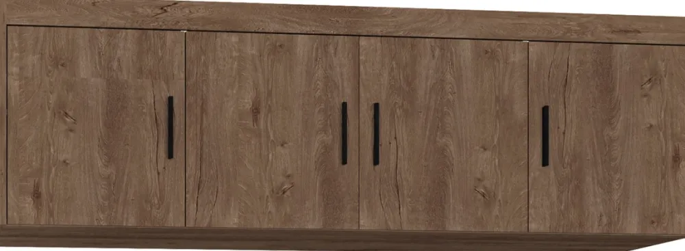 Zestaw szafa czterodrzwiowa z nadstawką KUBA w kolorze dąb lefkas to idealna propozycja dla miłośników naturalnych aranżacji. Ciepły odcień drewna tworzy rustykalny klimat, a brak lustrzanych powierzchni dodaje spójności i elegancji.