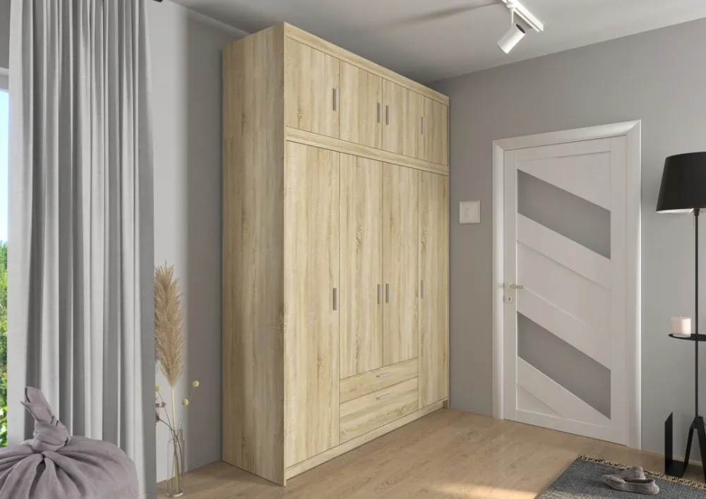 Szafa czterodrzwiowa z nadstawką KUBA dąb sonoma – jasna elegancja i funkcjonalność