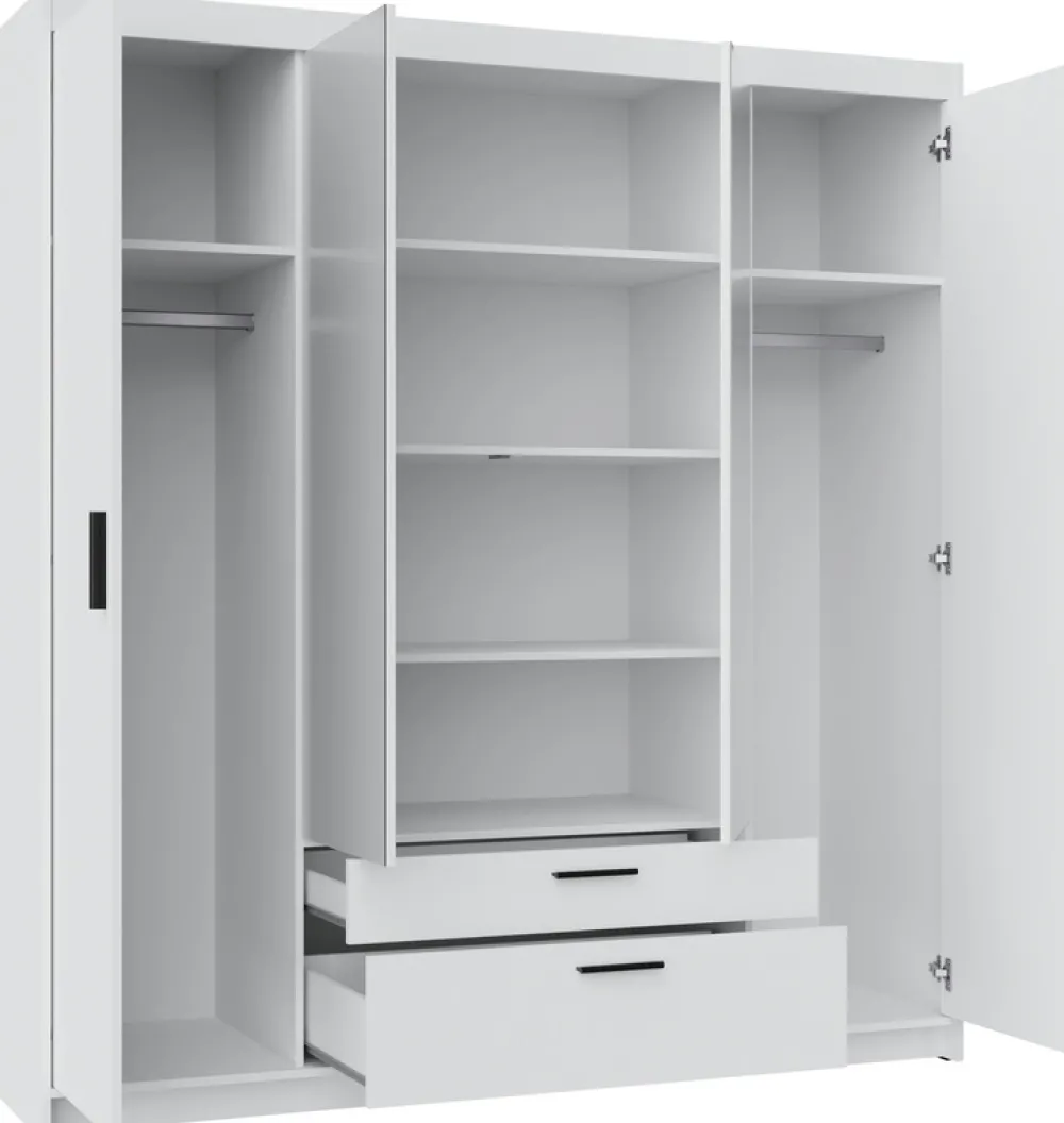 - Funkcjonalny układ wnętrza – połączenie półek, dwóch drążków i dwóch szuflad daje wiele możliwości organizacyjnych