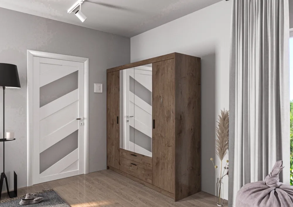 Szafa czterodrzwiowa dąb lefkas 176 cm – rustykalny urok i praktyczne wnętrze