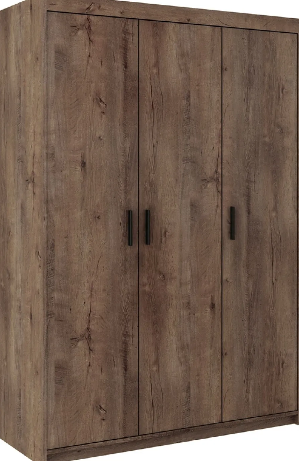 - Szafa KUBA 133 cm w kolorze dąb lefkas to klasyczny wybór z funkcjonalnym wnętrzem. 3 drzwi, 5 półek i drążek na ubrania zapewniają porządek. Czarne uchwyty dodają akcentu, a matowe wykończenie jest trwałe i łatwe w czyszczeniu. Idealna do sypialni