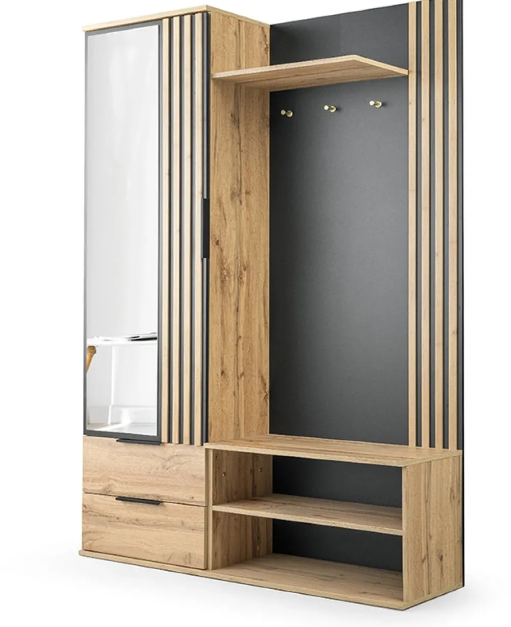 Garderoba do przedpokoju o szerokości 140 cm to połączenie stylu, funkcjonalności i wygody. Idealnie sprawdzi się w każdym przedpokoju, oferując zarówno miejsce do przechowywania, jak i stylowy element dekoracyjny, który wzbogaci każde wnętrze.