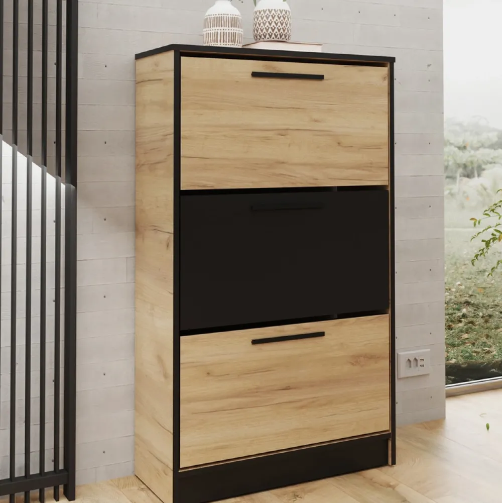 Zamów szafkę na buty dąb craft + czarny i dodaj swojemu wnętrzu styl oraz funkcjonalność!