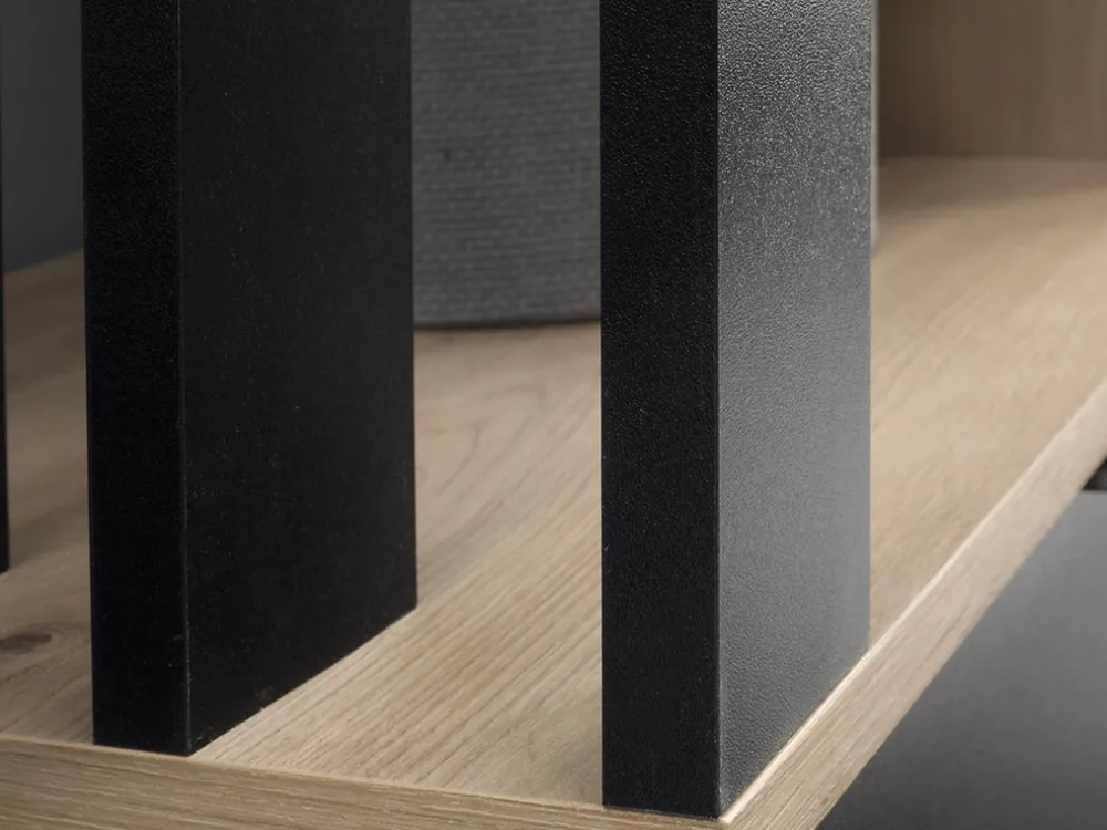 - Uchwyty mebla zostały wykonane z metalu w czarnym kolorze.