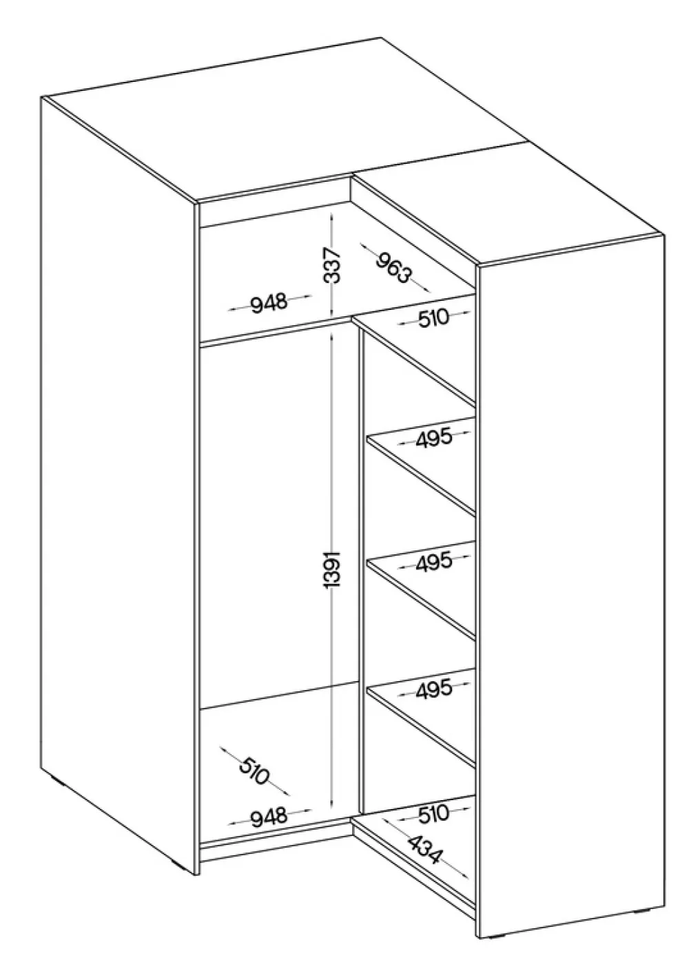 - Nadstawka narożna: 98 x 55 x 98 cm