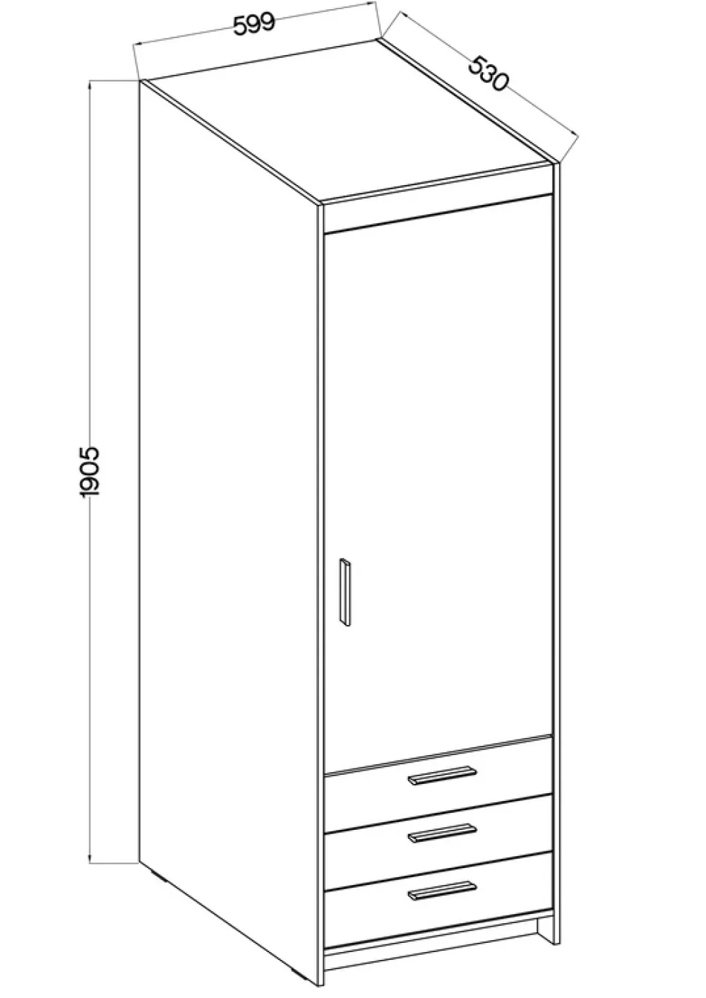- Szafa 1-drzwiowa z szufladami: 60 × 190,5 × 53 cm