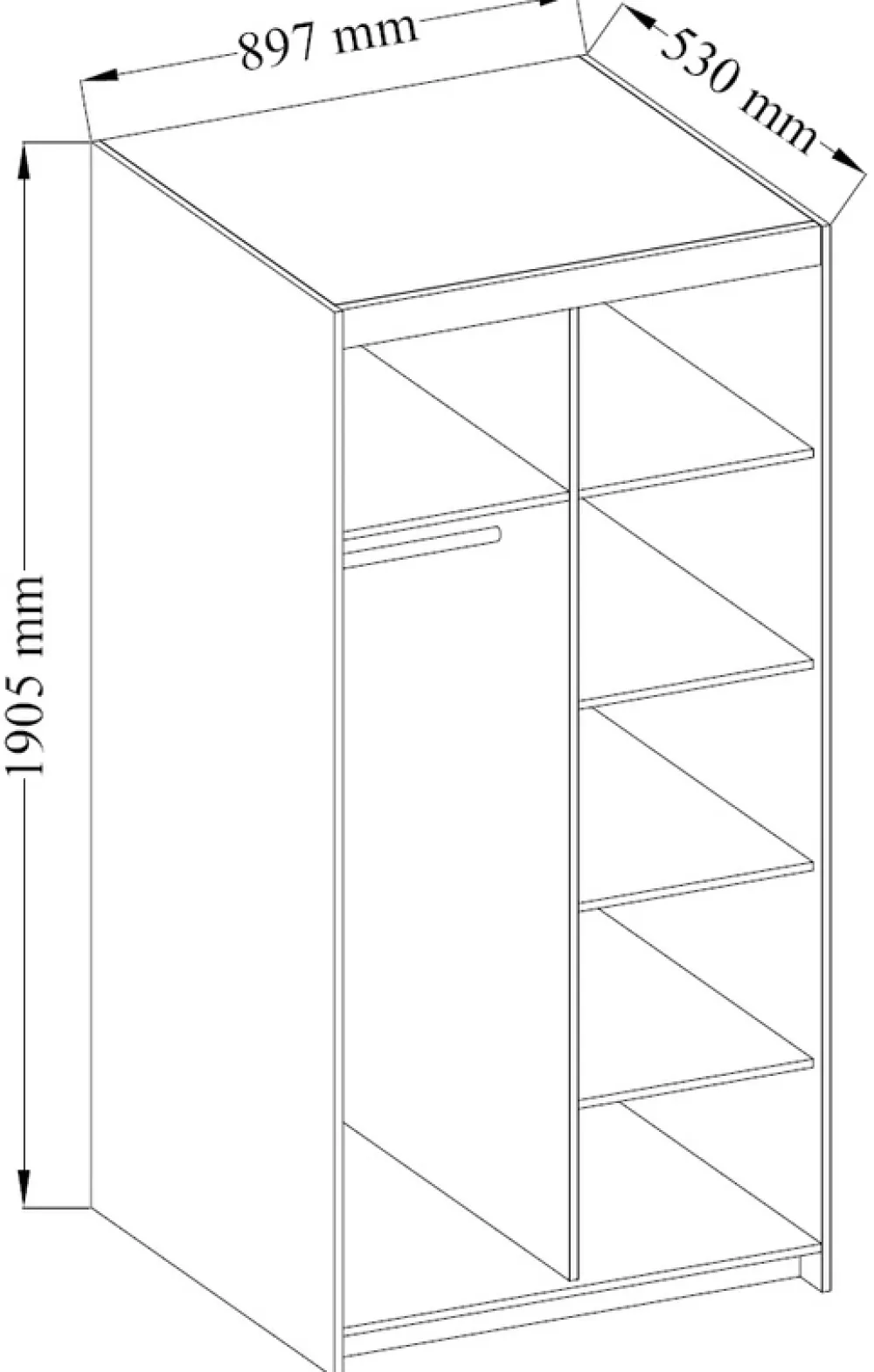 - Szafa 2-drzwiowa z dwoma lustrami: 90 x 190,5 x 53 cm