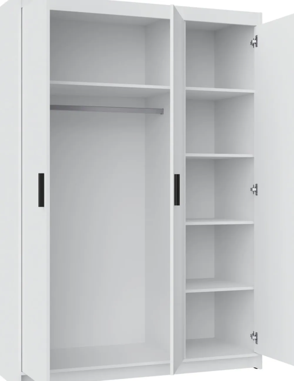 - Szafa 3-drzwiowa: 133 × 190,5 × 53 cm – 5 półek + drążek 851 mm